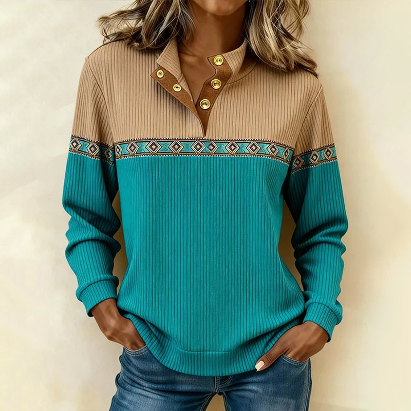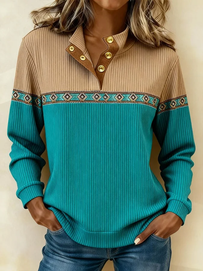 Women's Casual Color Block Printed Pullover Sweatshirt