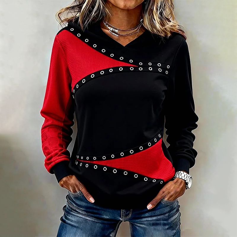 Women's Casual Hooded Color Block Sweatshirt