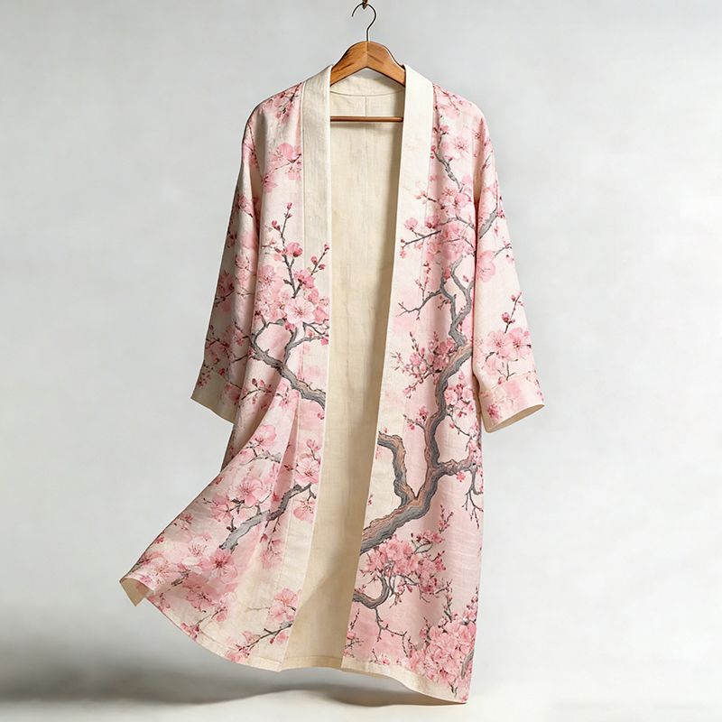 Women's Japanese Floral Print Long Kimono