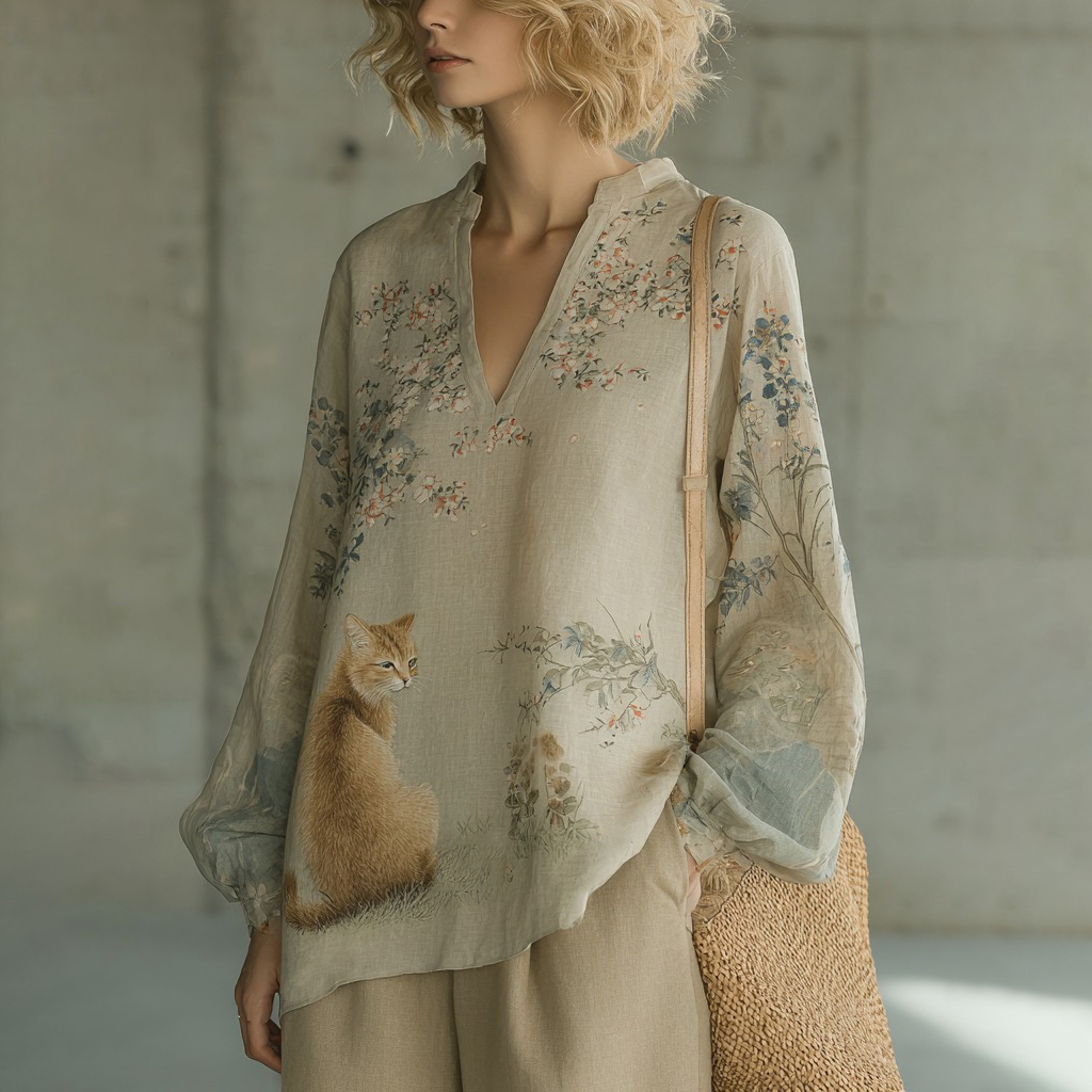 Popular Elements: Floral With Cat Print