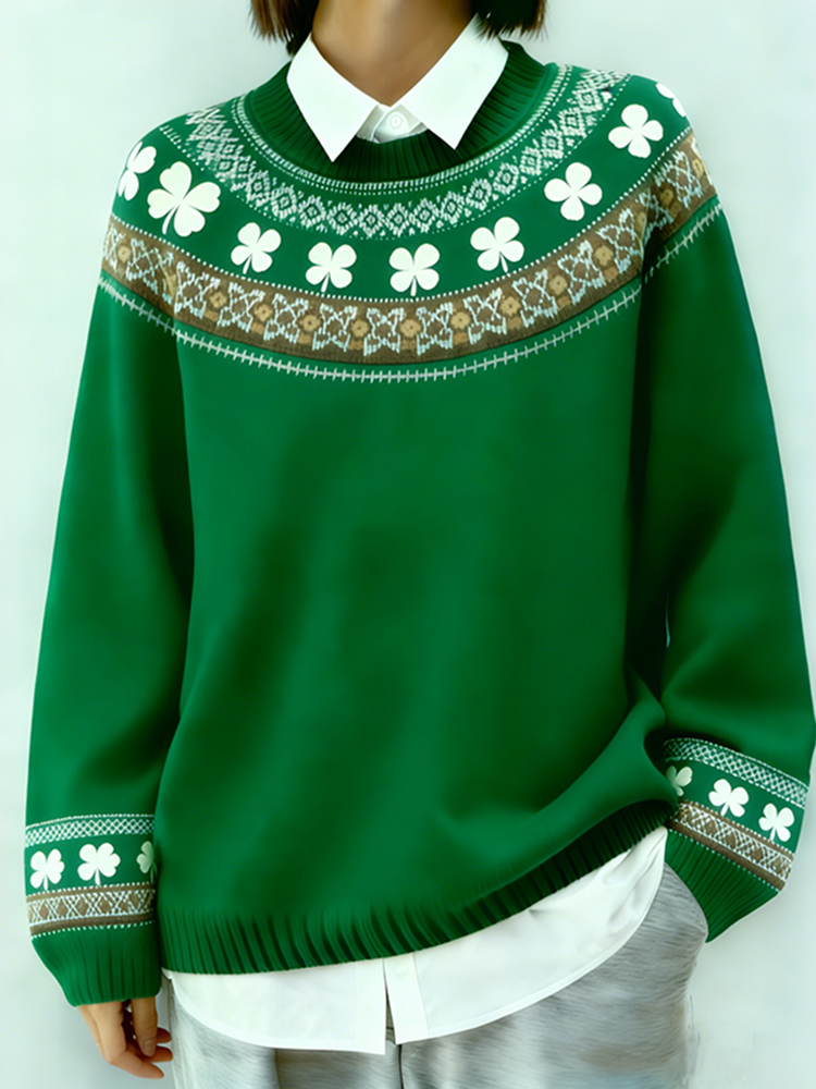 Women's St. Patrick's Day Shamrock Pattern Comfortable Knit Print Sweater