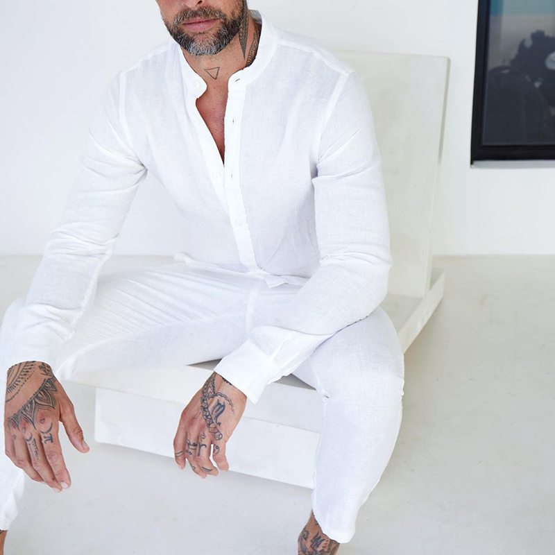 Beach Simple Long Sleeve Shirt Set