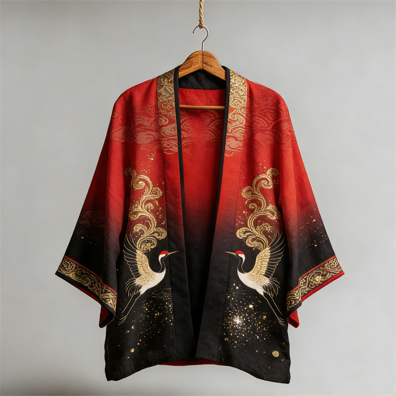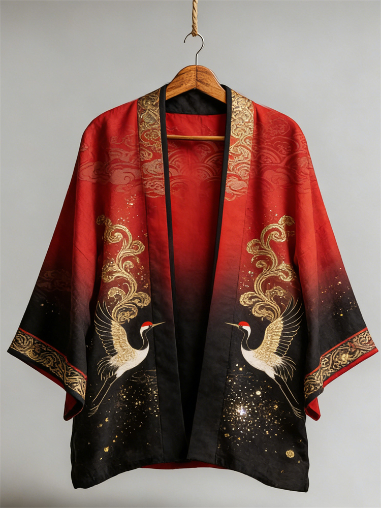Japanese Cranes Glitter Art Gradient Linen Kimono