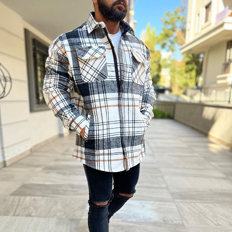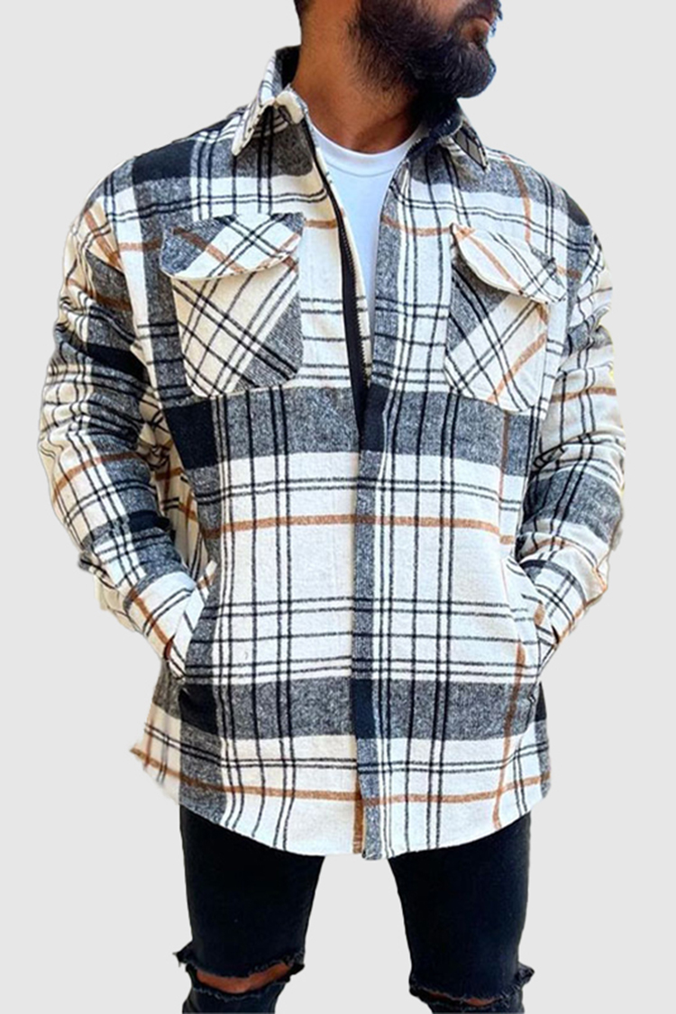 Men'S Casual Check Zipper Shirt Jacket