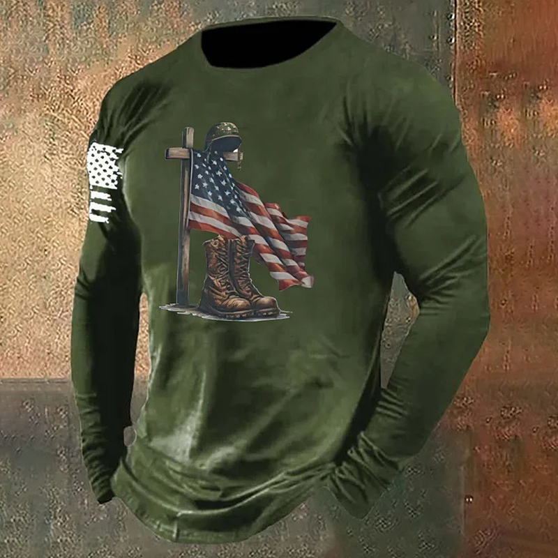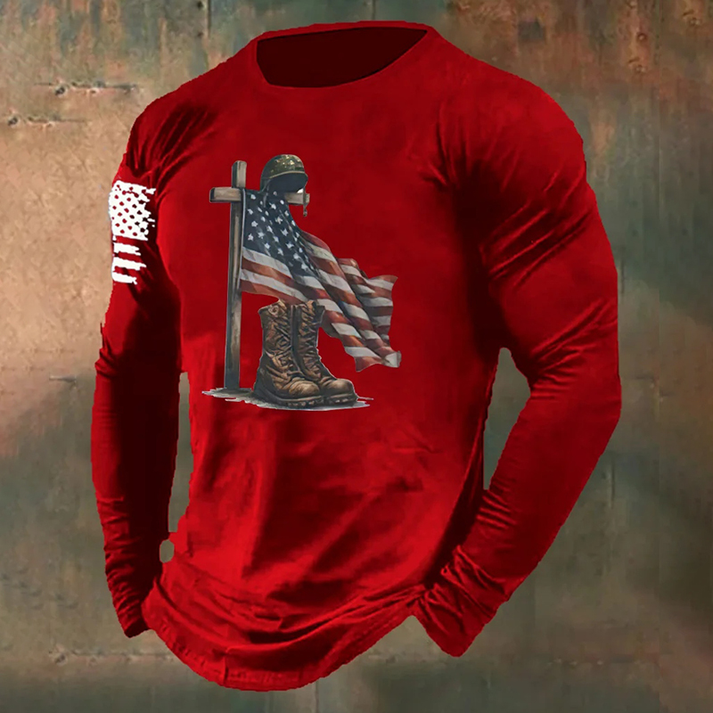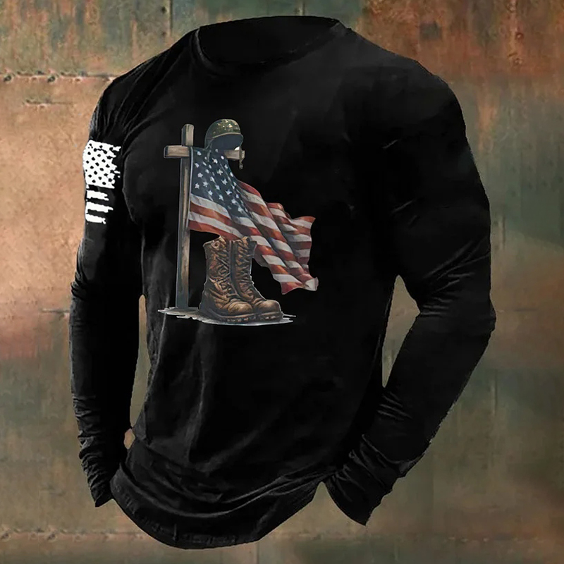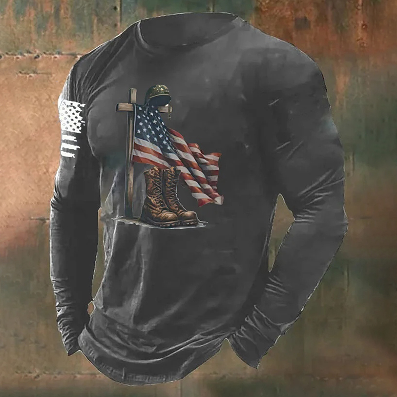 Men's Vintage Faith Veteran Flag Print Long Sleeve T-shirt