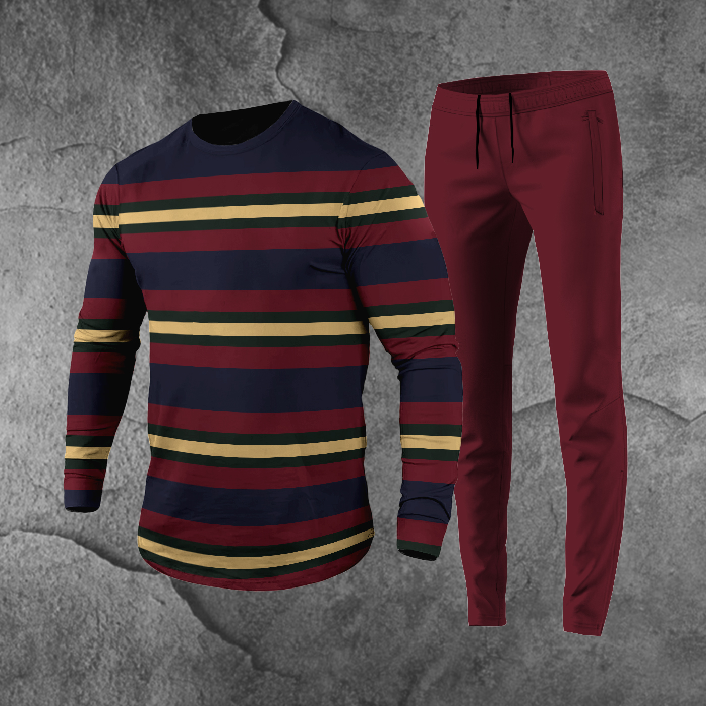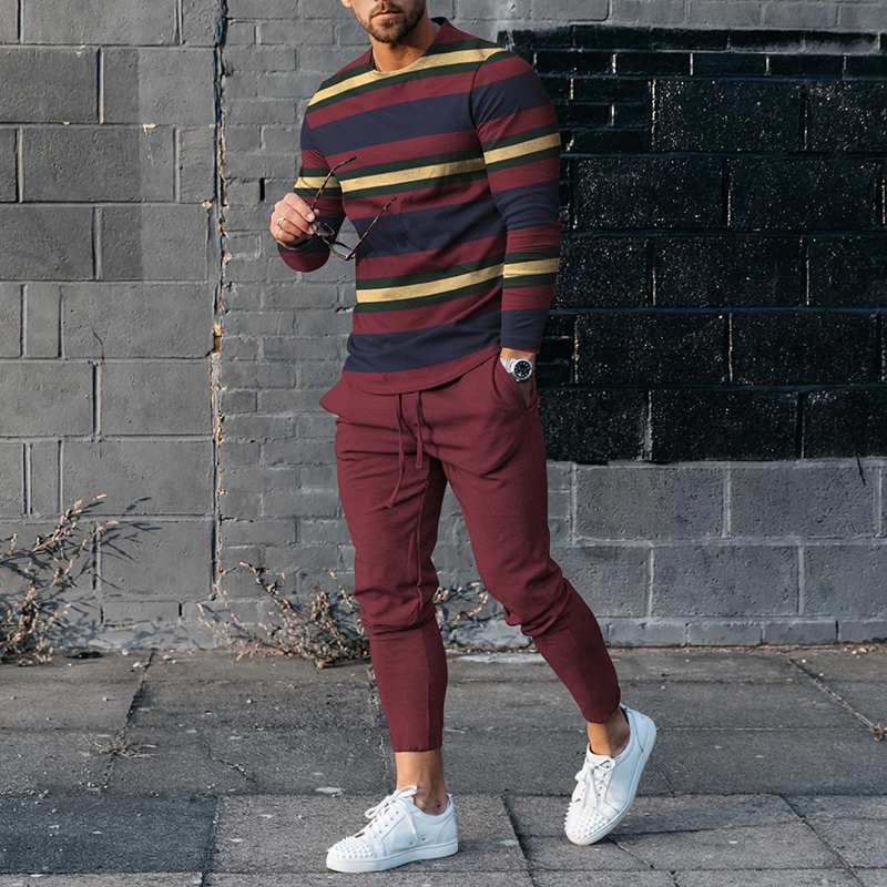 Stripe Contrast Print T-Shirt And Pants Co-Ord