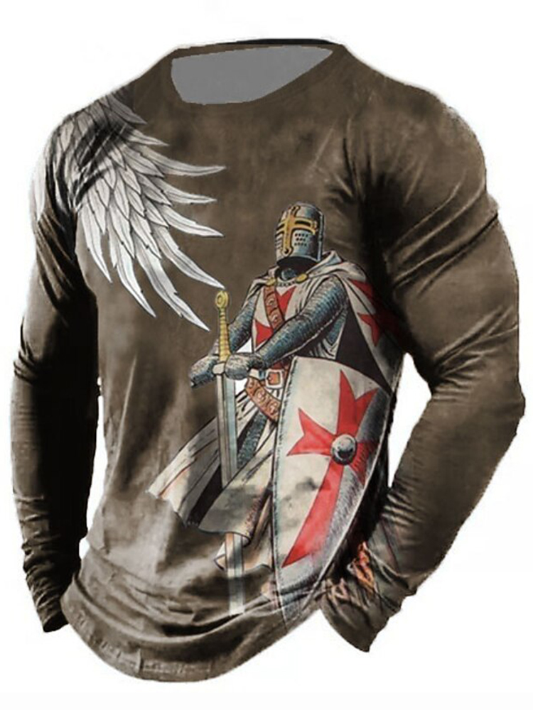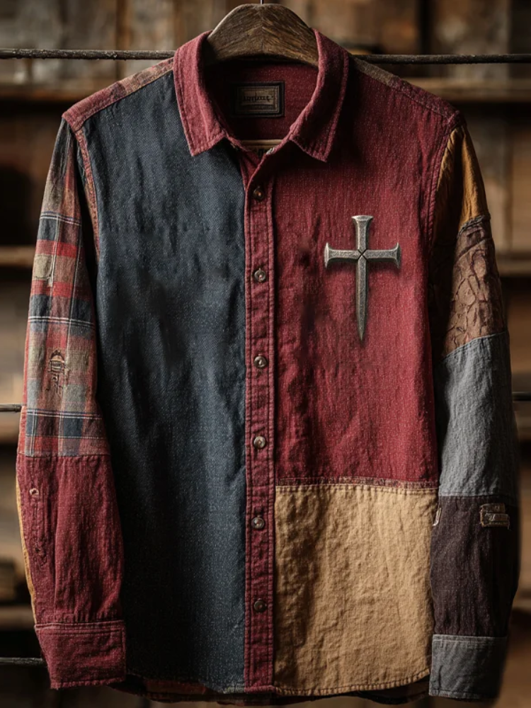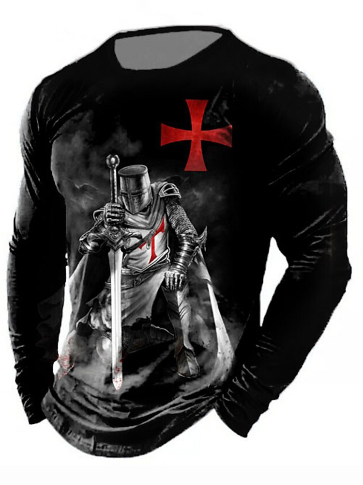 Men's Retro Faith Cross Print Long Sleeve T-shirt