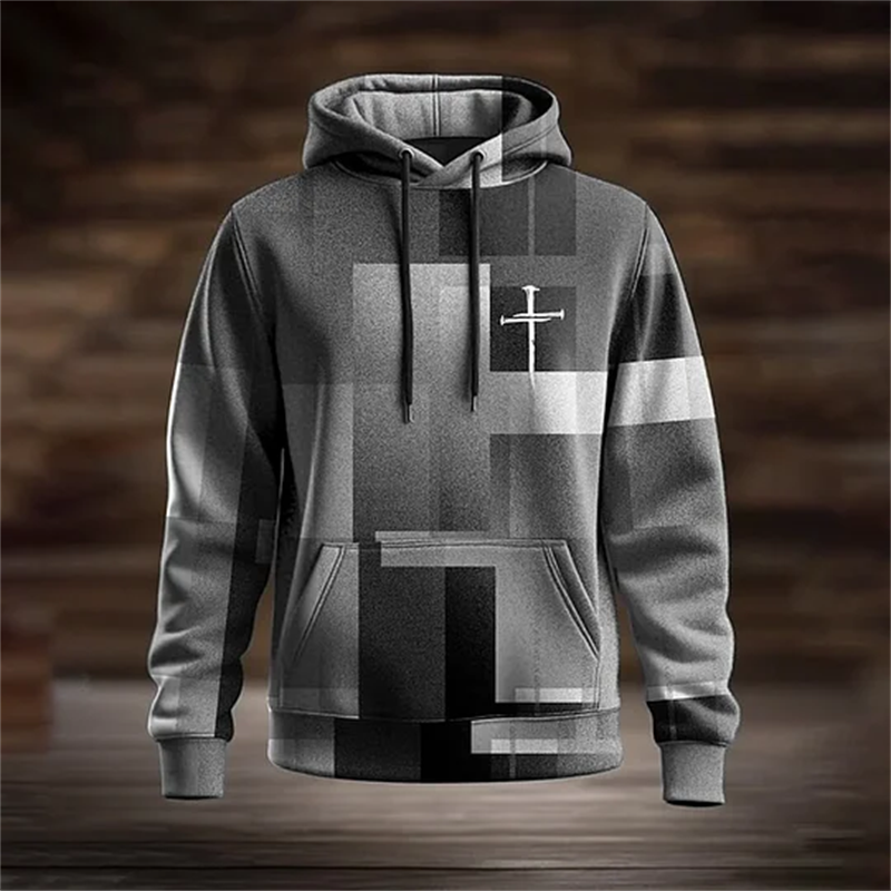 Men's Casual Retro Contrast Color Faith Hoodie