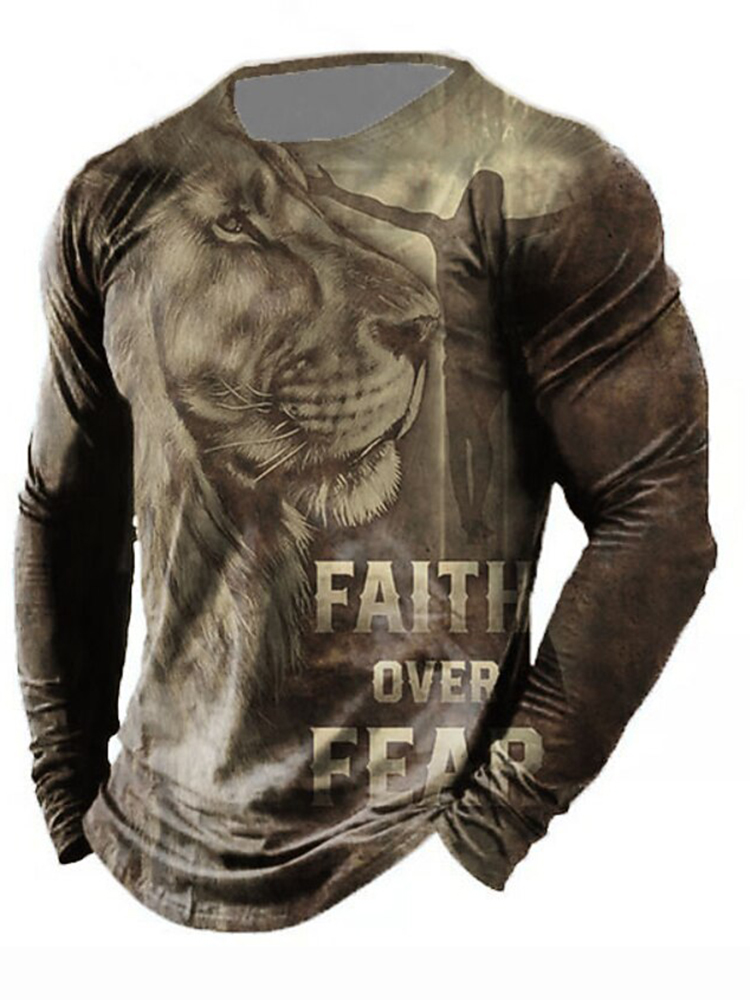 Men's Casual Faith Cross Print Long Sleeve T-shirt