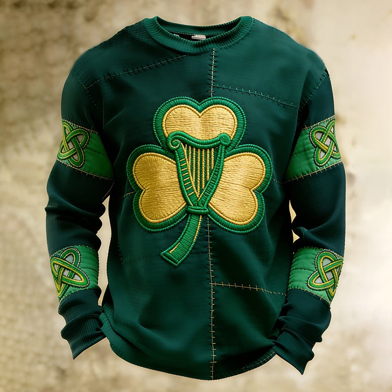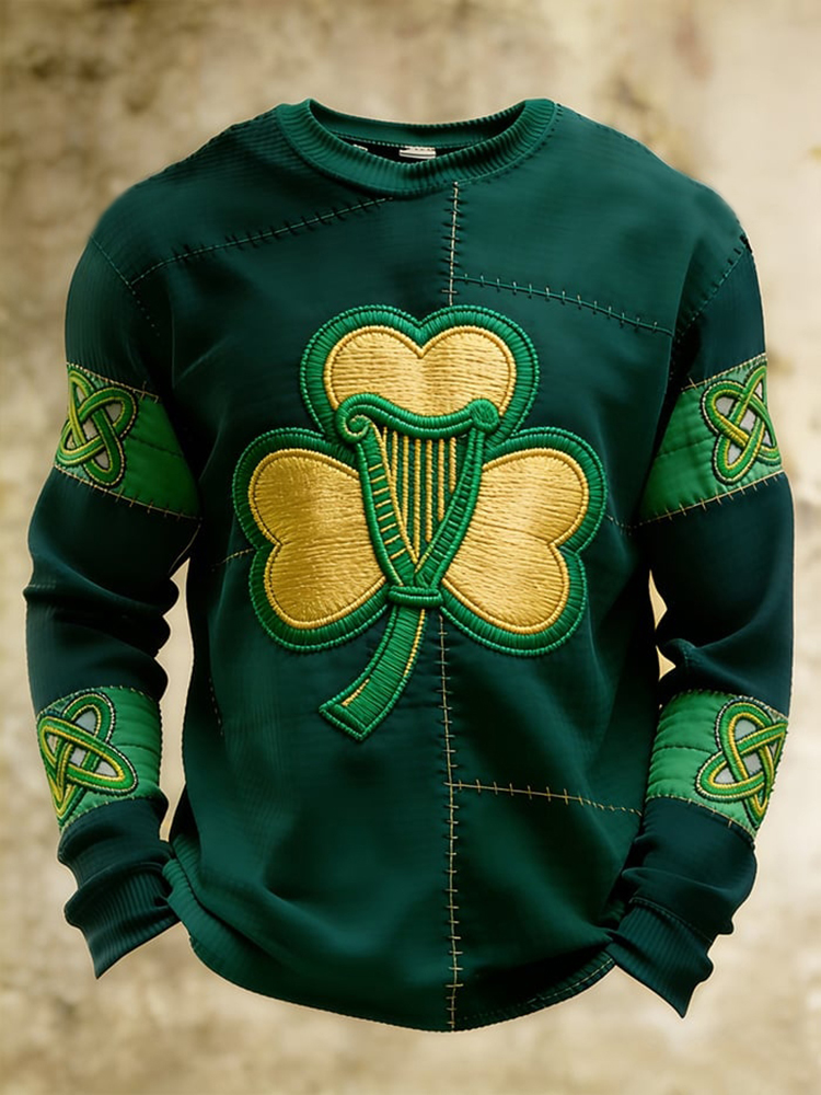 Men's St. Patrick's Clover Art Waffle Long-sleeve Sweatshirt