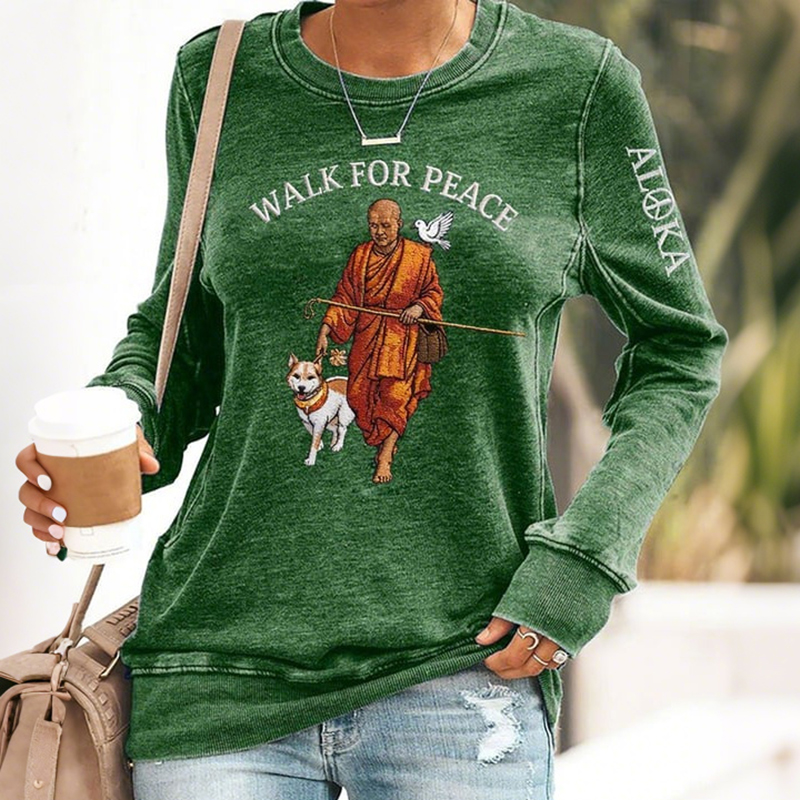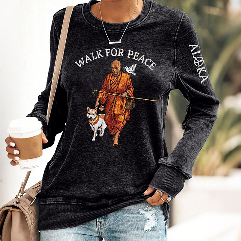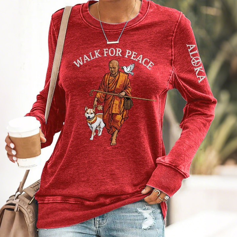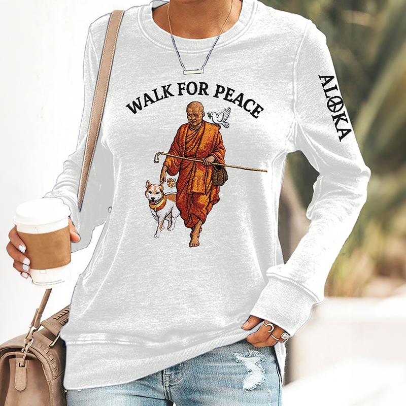 Retro Walk For Peace Monks With Aloka Dog Print Sweatshirt