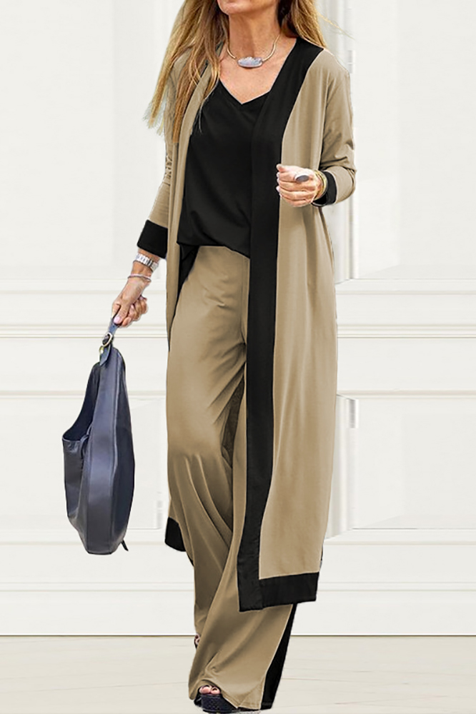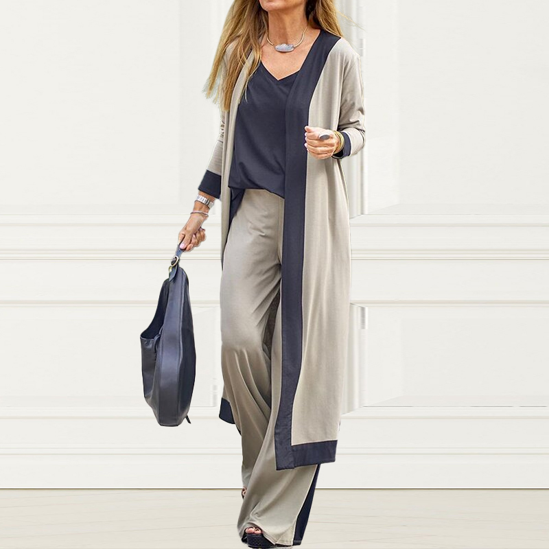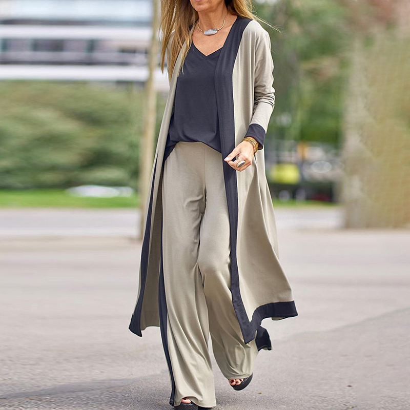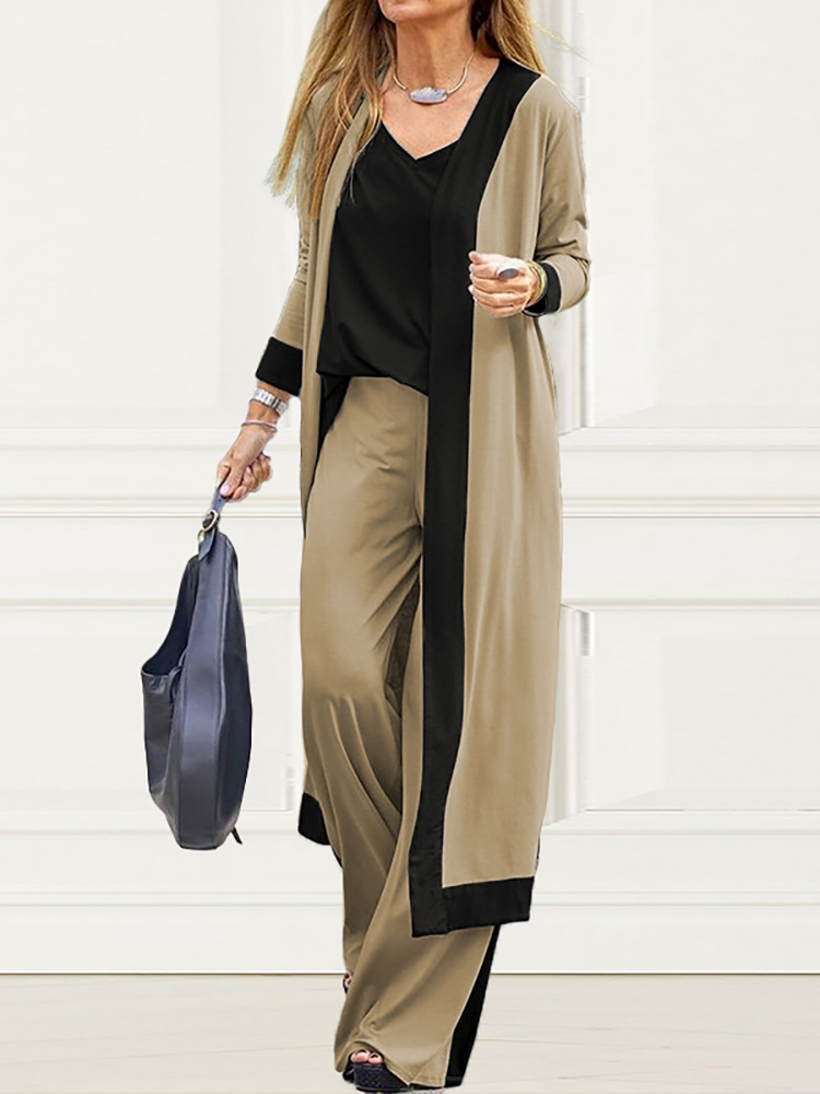 Three-piece casual color-block cardigan set