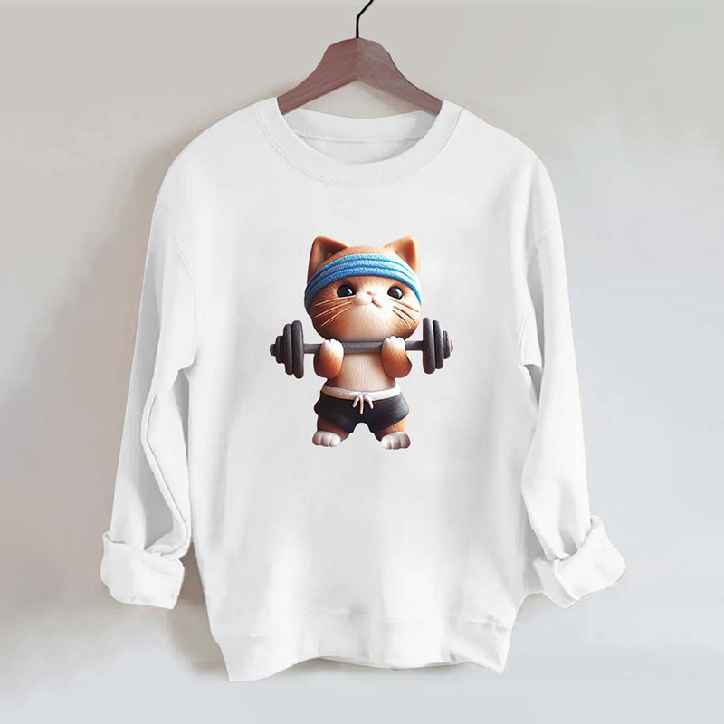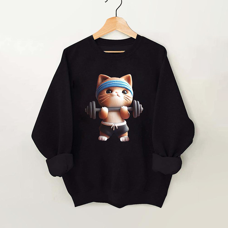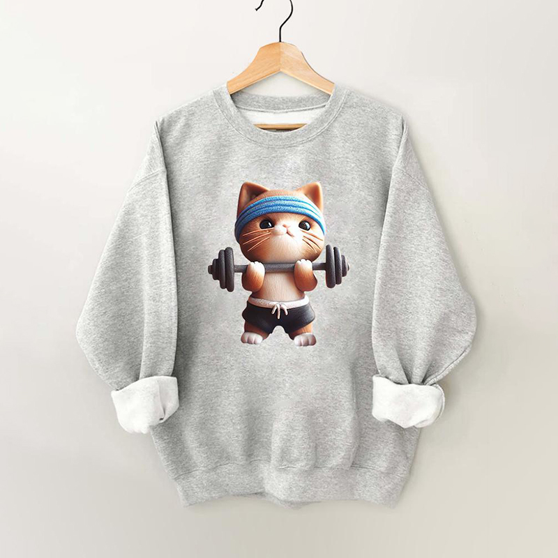 Barbell Weightlifting Cat Gym Sweatshirt