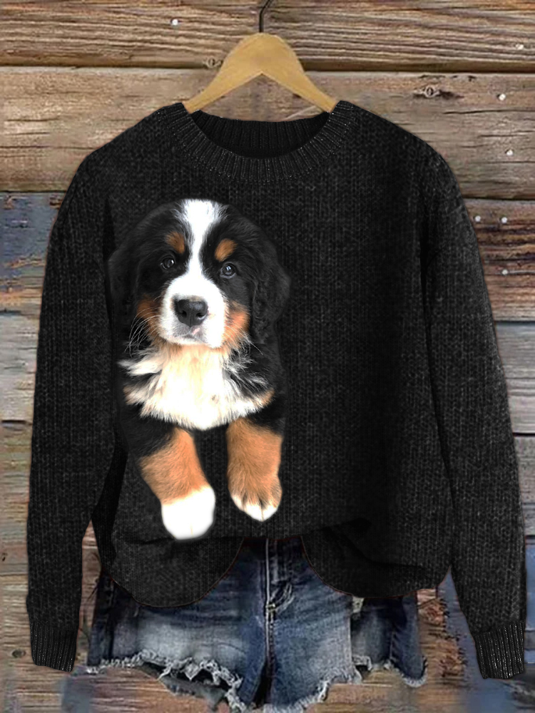 Bernese Mountain Dog Plush Cozy Knit Sweater