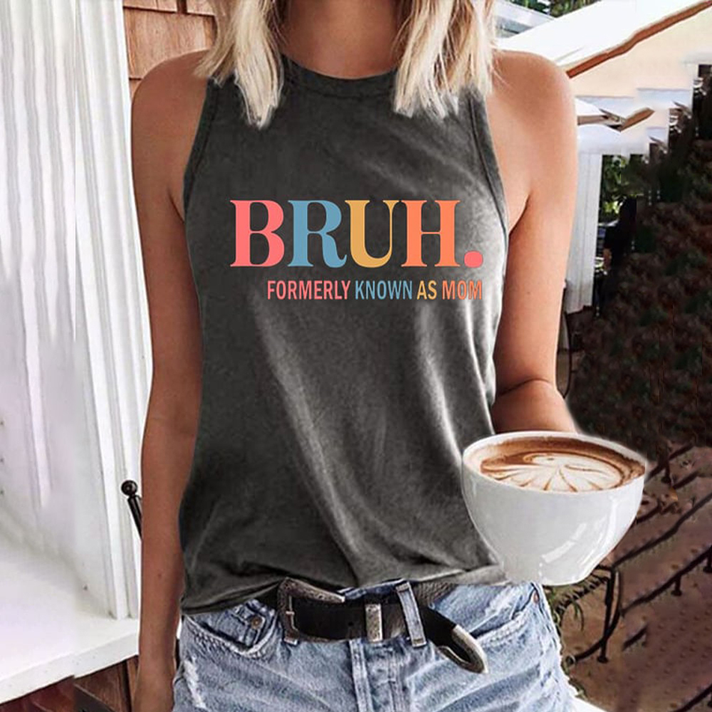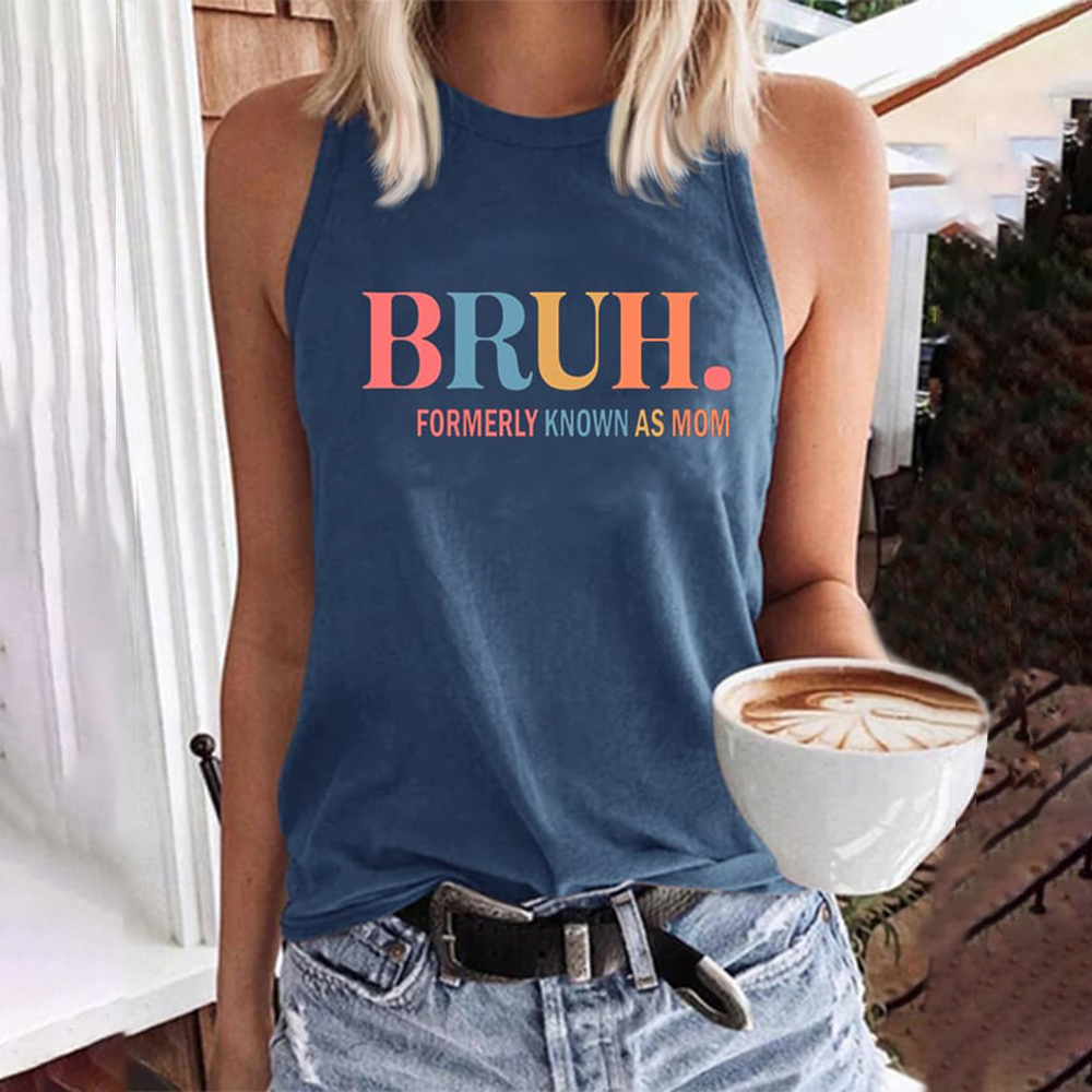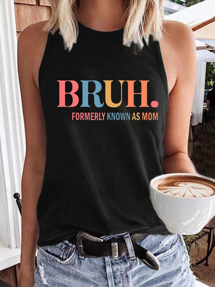 Bruh Formerly Known as Mom Print Crew Neck Casual Tank Top