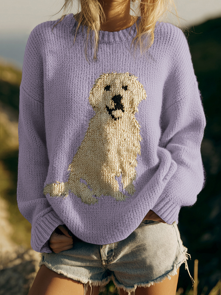 Classic Fuzzy Golden Retriever Dog Felt Cozy Knit Sweater