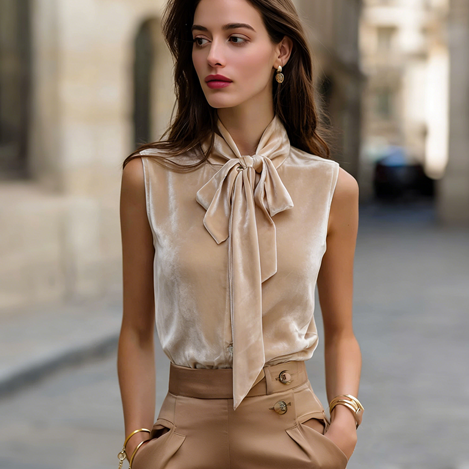 Elegant Temperament Velvet Material Sleeveless Top