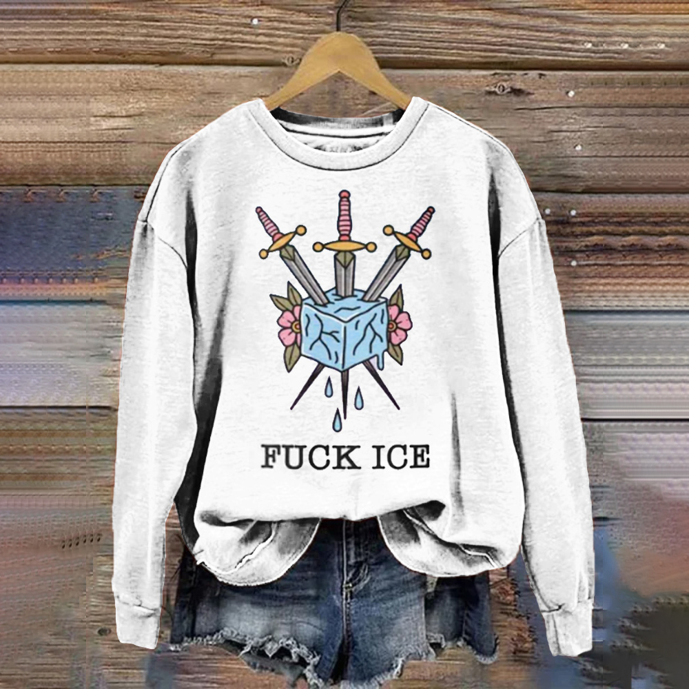 Fuck Ice Simple Print Crew Neck Sweatshirt