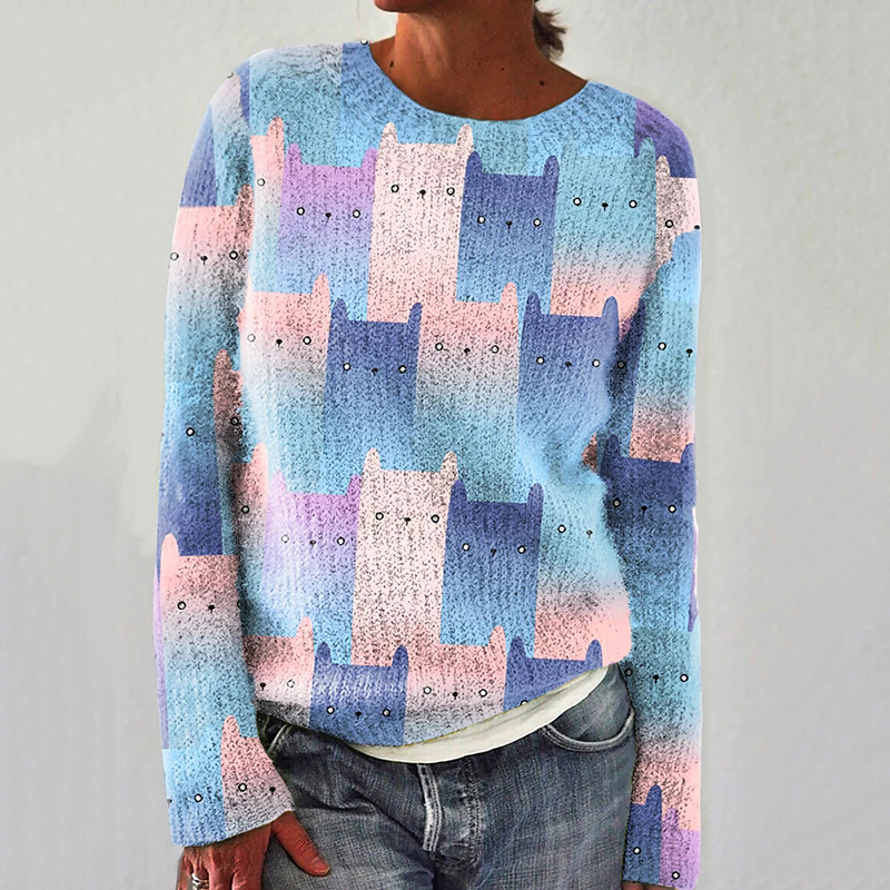 Funny Cute Cat Print Casual Knit Pullover Sweater