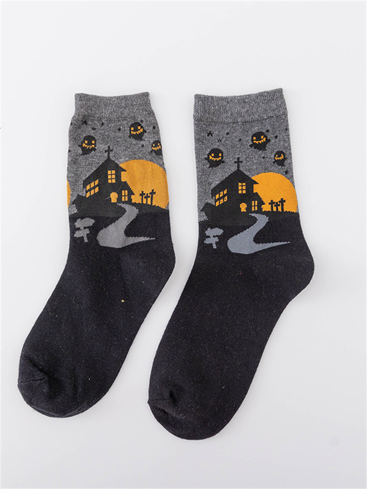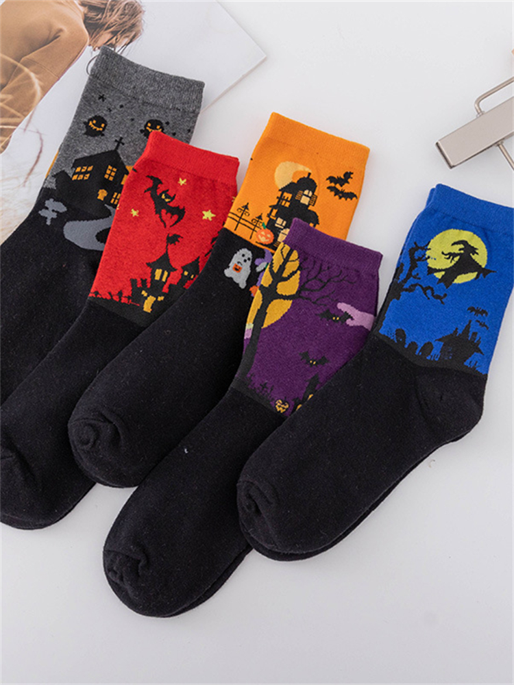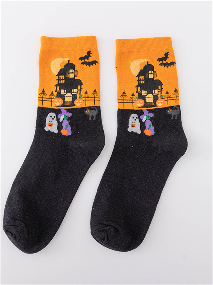 Halloween Inspired Contrast Color Knit Socks
