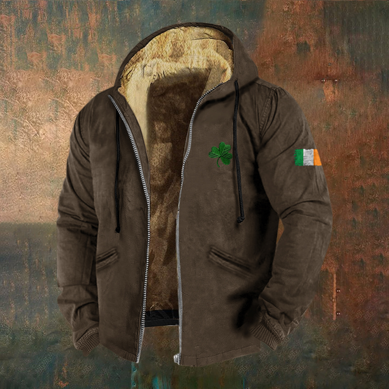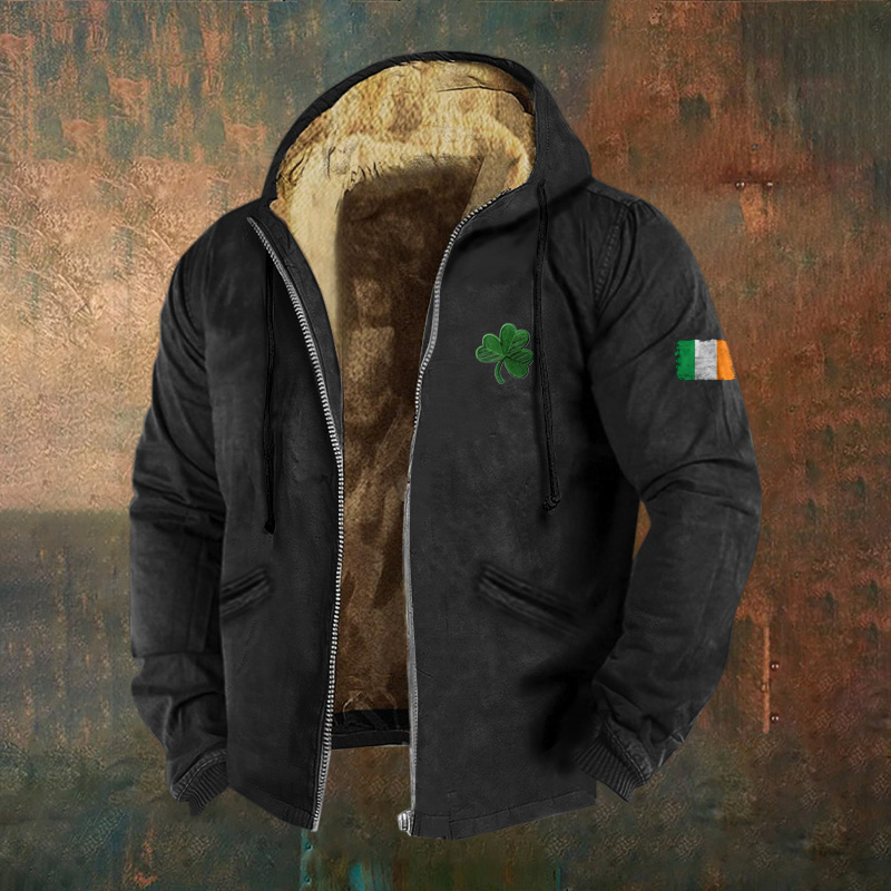 Irish St Patricks Embroidery Vintage Pattern Casual Zip Hoodie