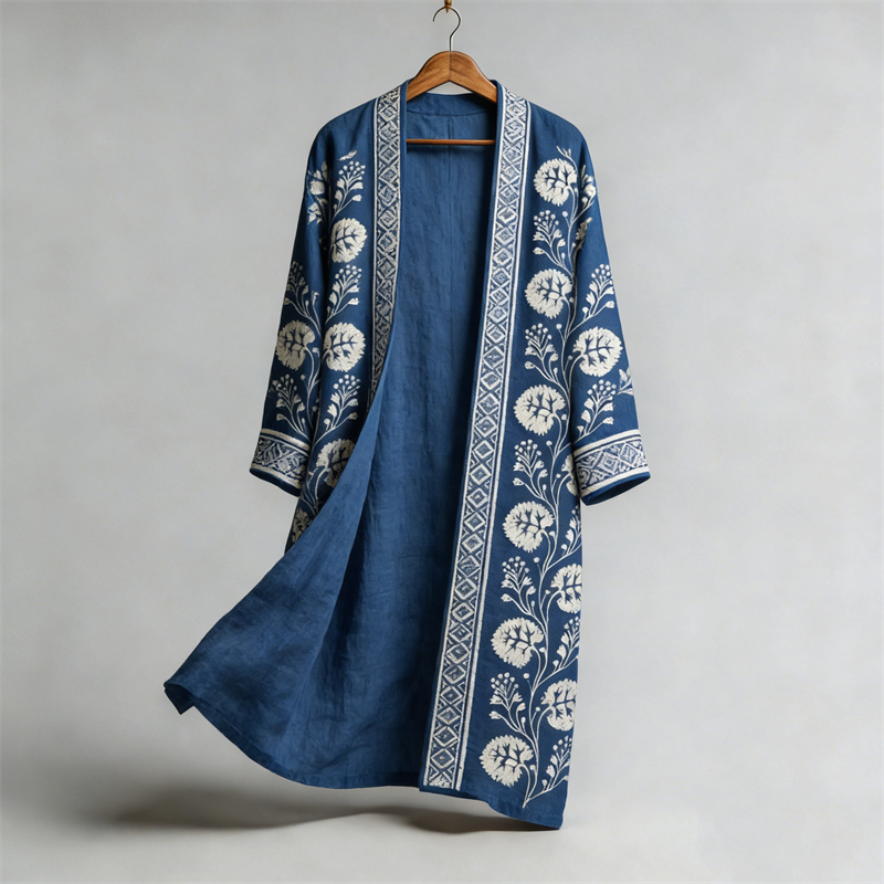 Japanese Vintage Floral Art Flowy Linen Long Kimono