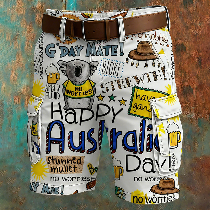 Men's Australian Flag Art Vacation Business Printed Shorts