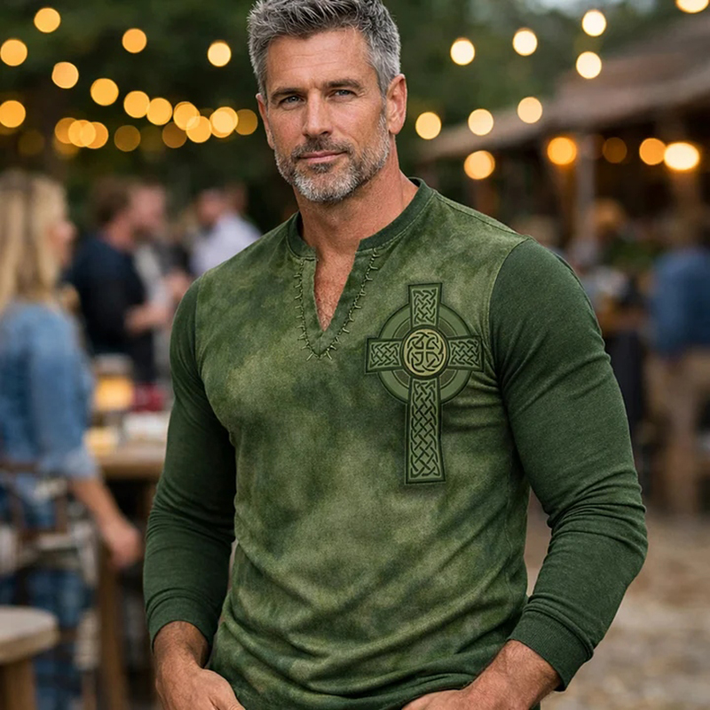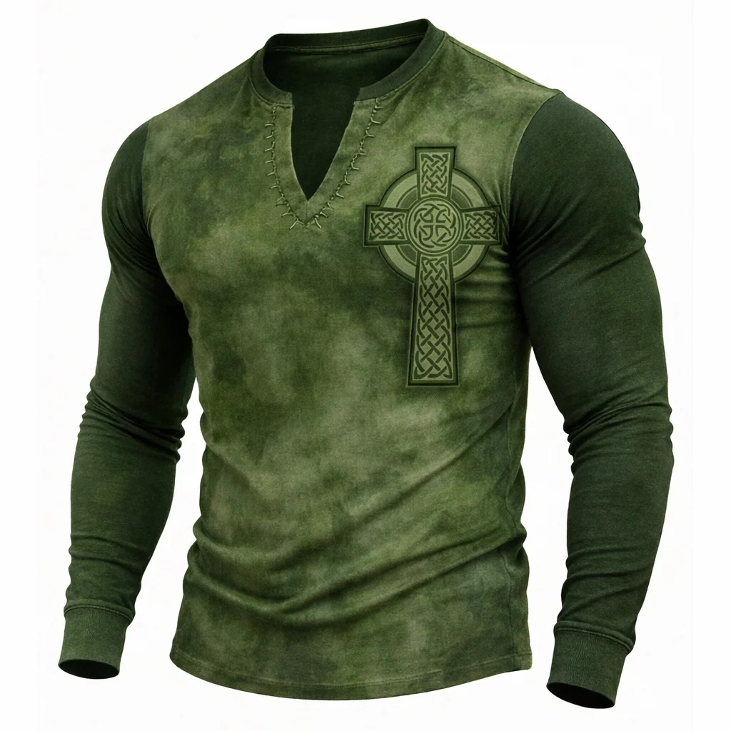 Men's Celtic Cross Print Long Sleeve T-shirt