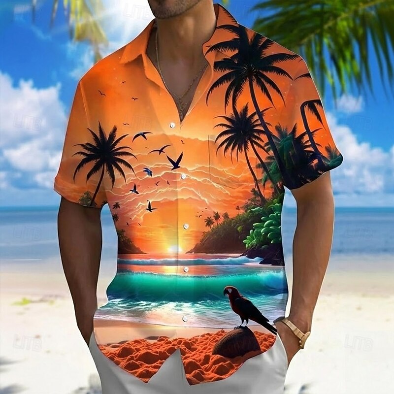 Men's Coconut Tree Ocean Tropical Plants Summer Hawaiian Shirt