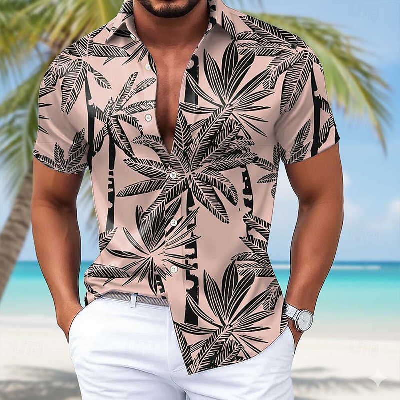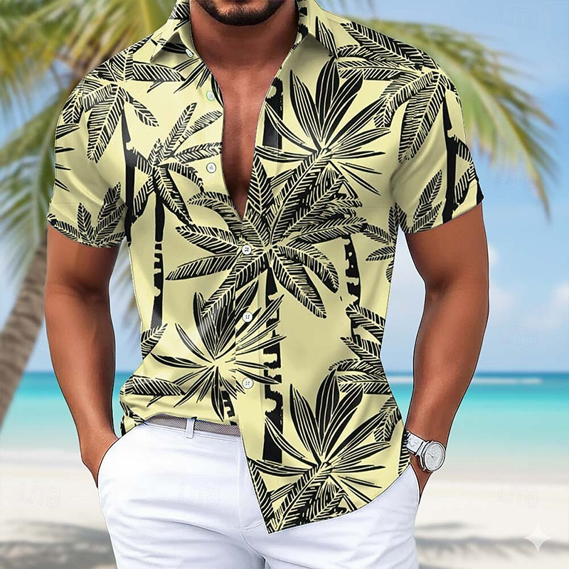 Men's Coconut Tree Tropical Plants Satin Hawaiian Shirt