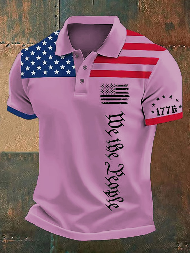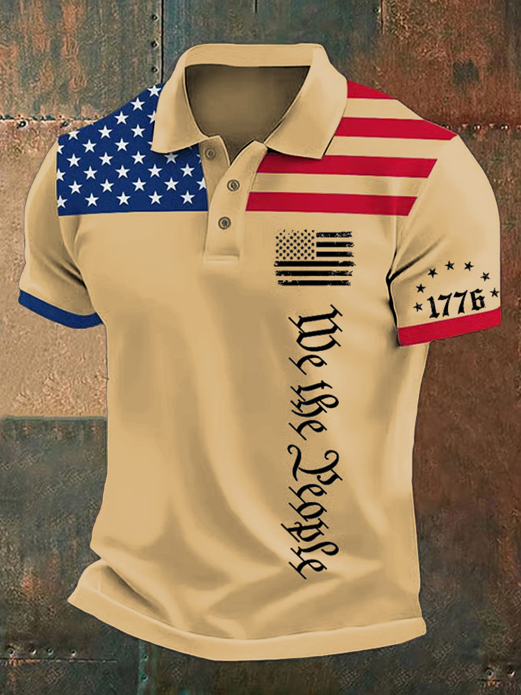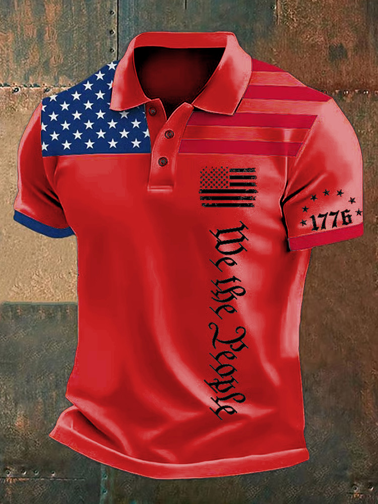 Men's Independence Day Flag We The People Printed Holiday Casual Polo Shirt