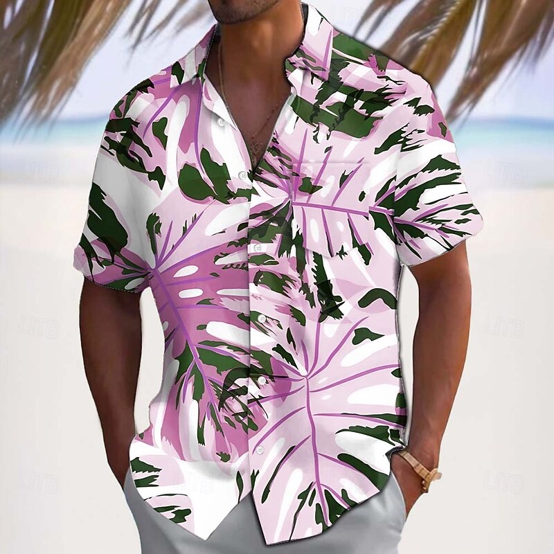 Men's Palm Leaf Tropical Plants Summer Hawaiian Shirt