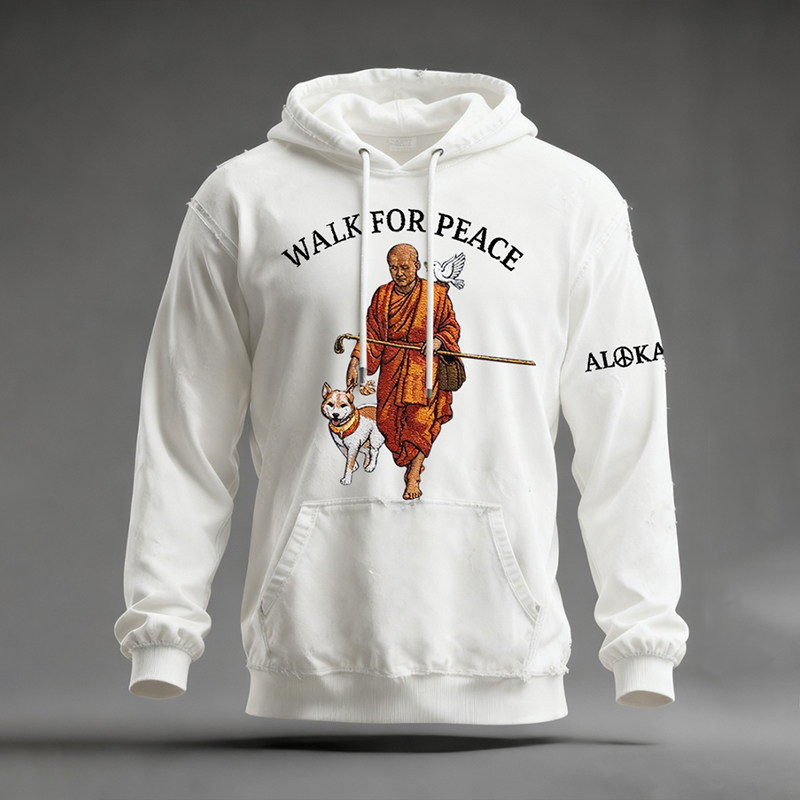 Men's Retro Walk For Peace Monks With Aloka Dog Print Casual Hoodie