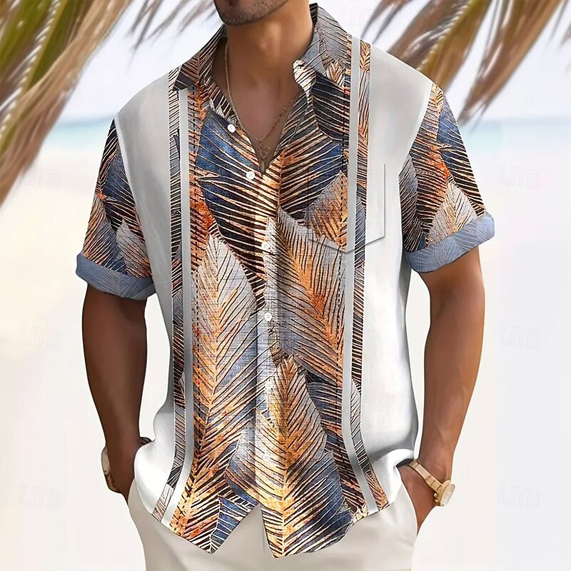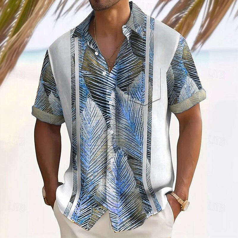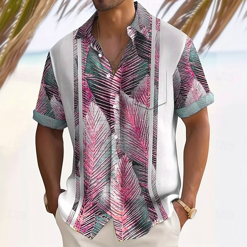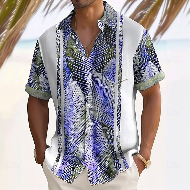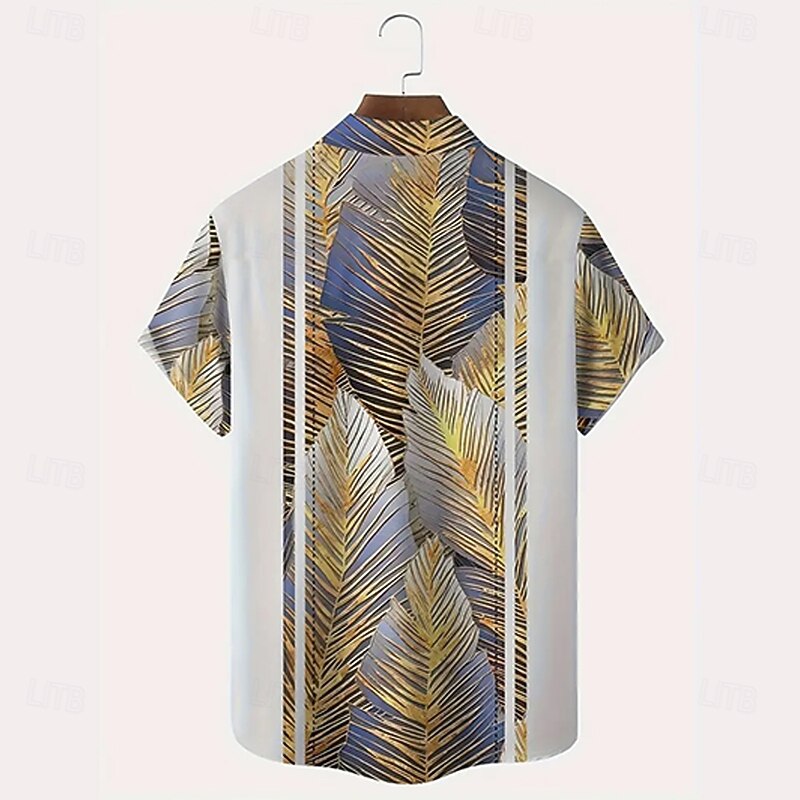Men's Striped Palm Leaf Tropical Plants Summer Hawaiian Shirt