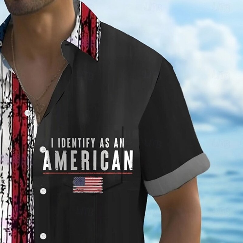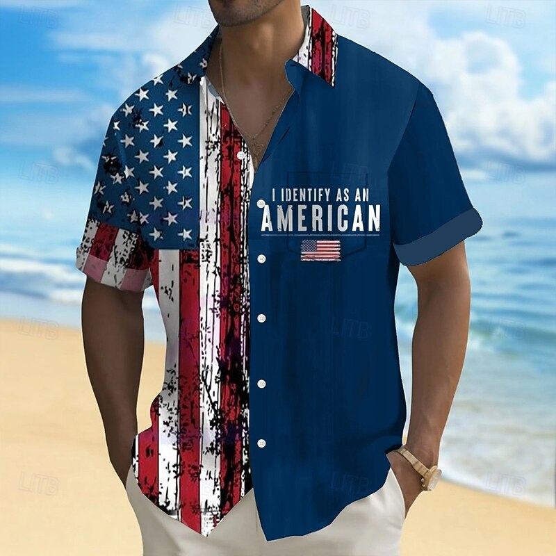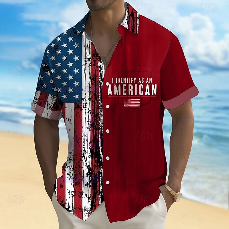 Men's Vintage American Us Flag Patriotic Print Pocket Shirt