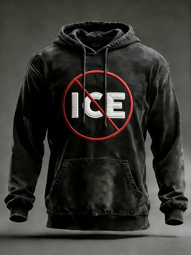 Men's Vintage No Ice Printed Distressed Hoodie