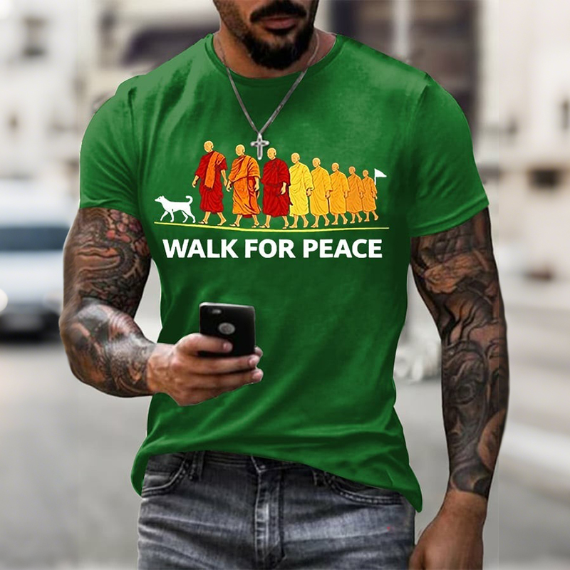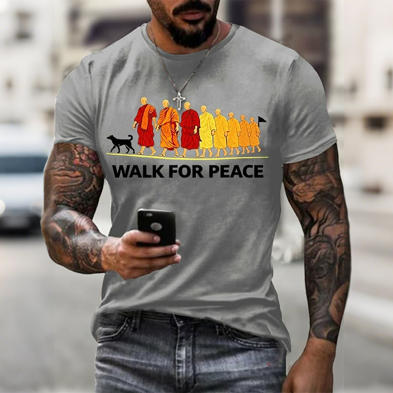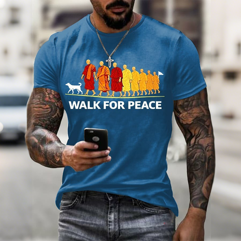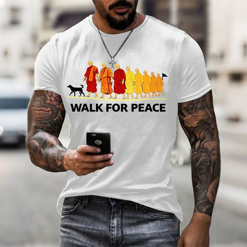 Men's Walk For Peace Monks With Aloka Dog Print Short Sleeve Casual T-shirt