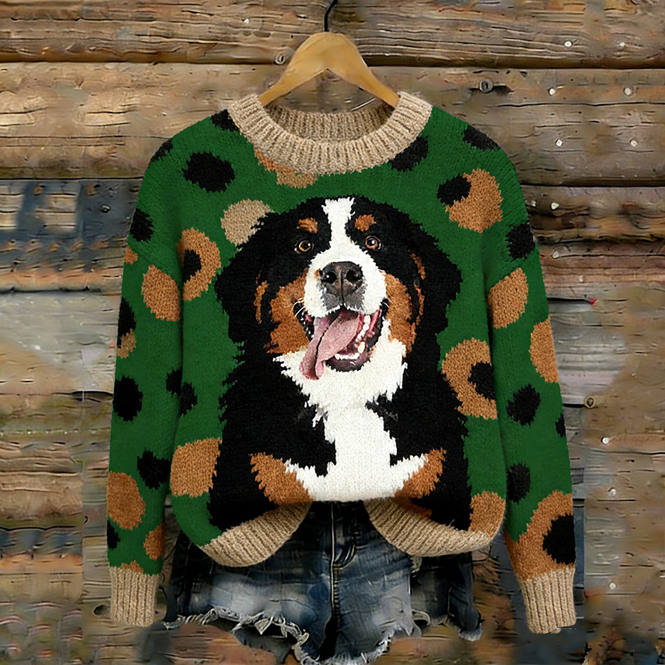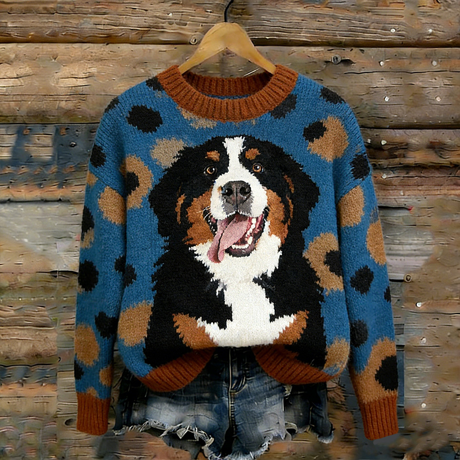 Retro Cute Puppy Pattern Round Neck Sweater