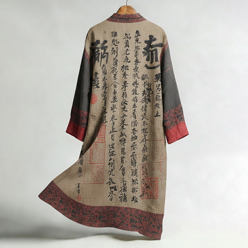 Retro Japanese Calligraphy Art Linen Blend Kimono Cardigan