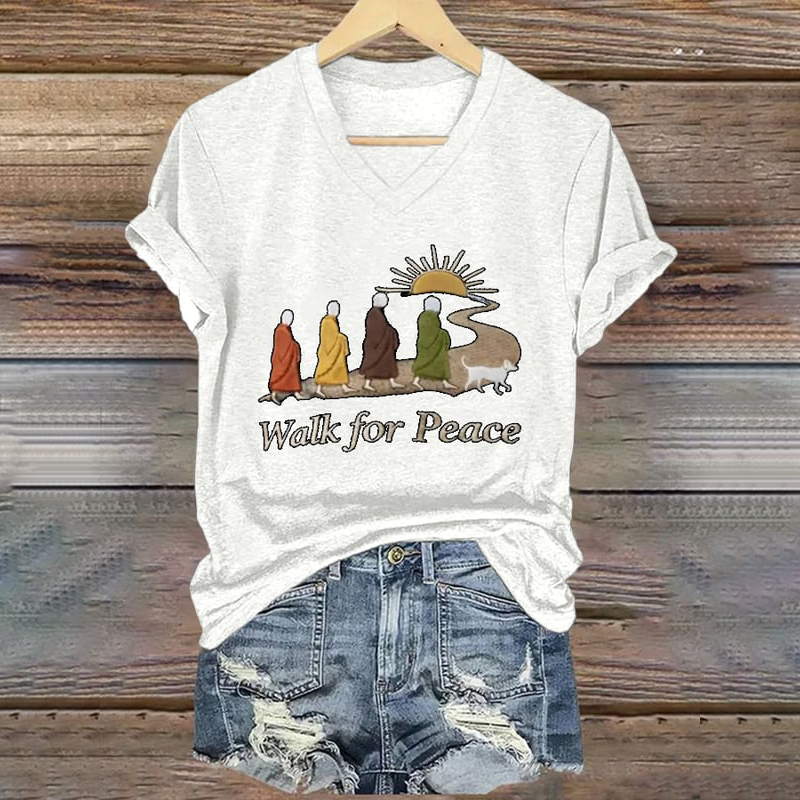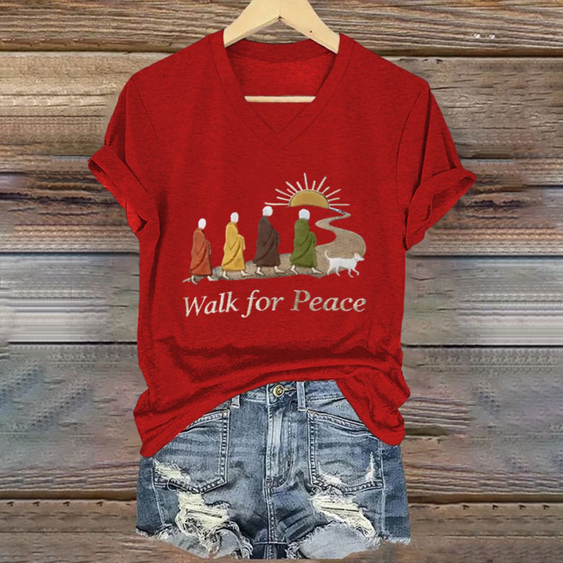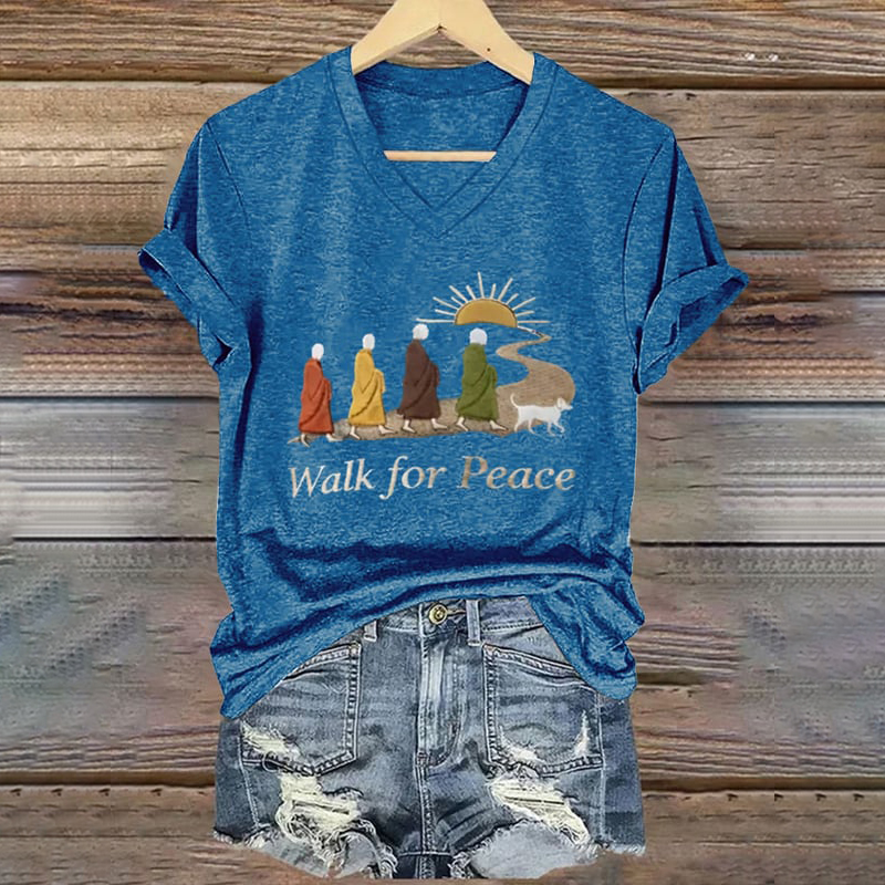 Retro Peace Monk Aloka Dog Print V-neck T-shirt