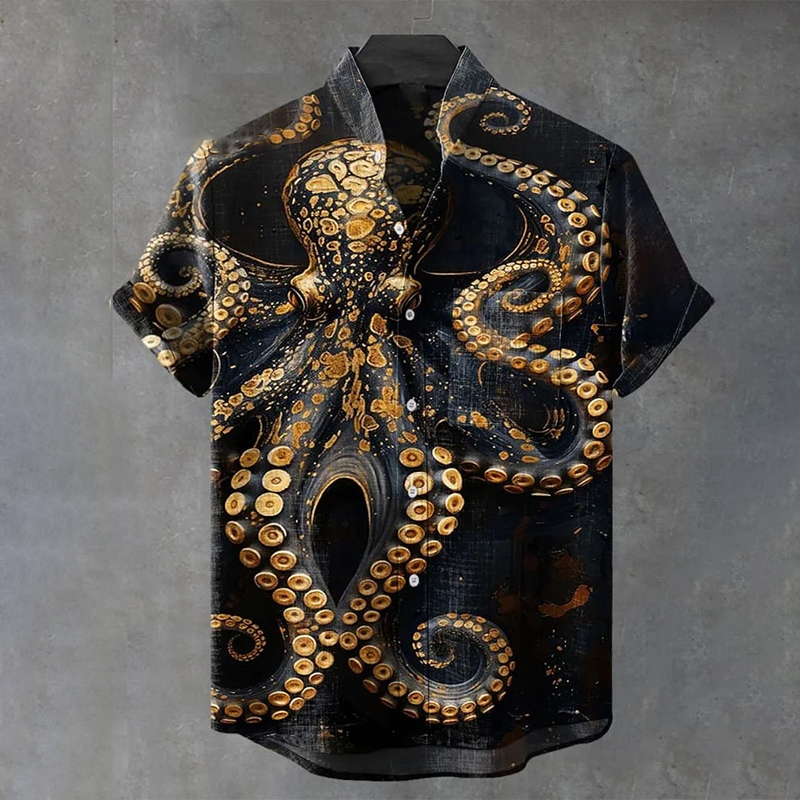 Sea Wave Vintage Print Casual Cotton Shirt