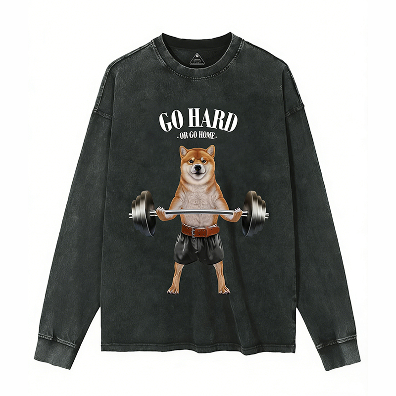Shiba Dog Weightlifting Washed Sweatshirt
