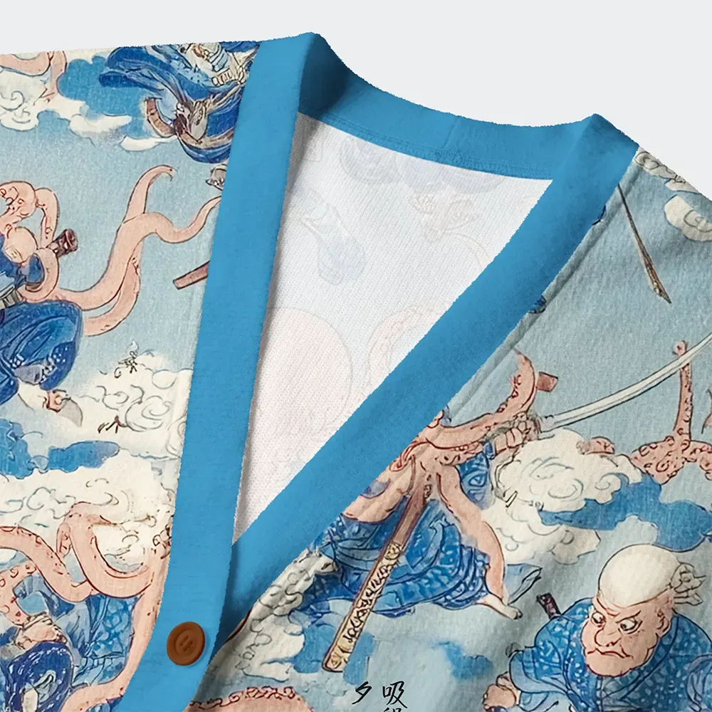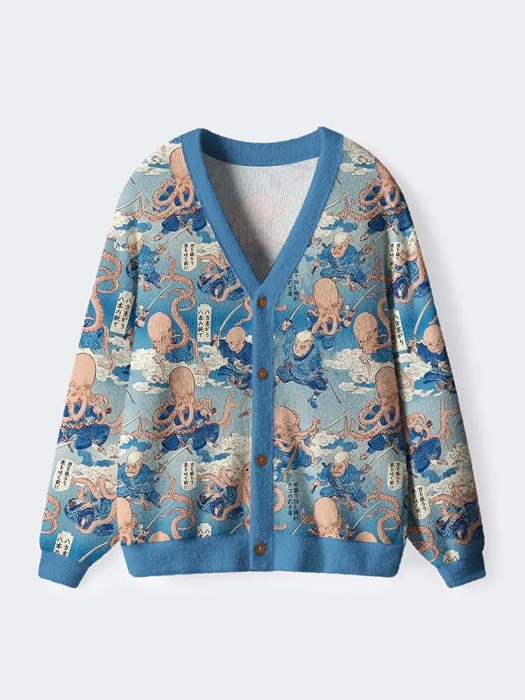The Rise Of The Octopus Samurai Ugly Cardigan Sweater