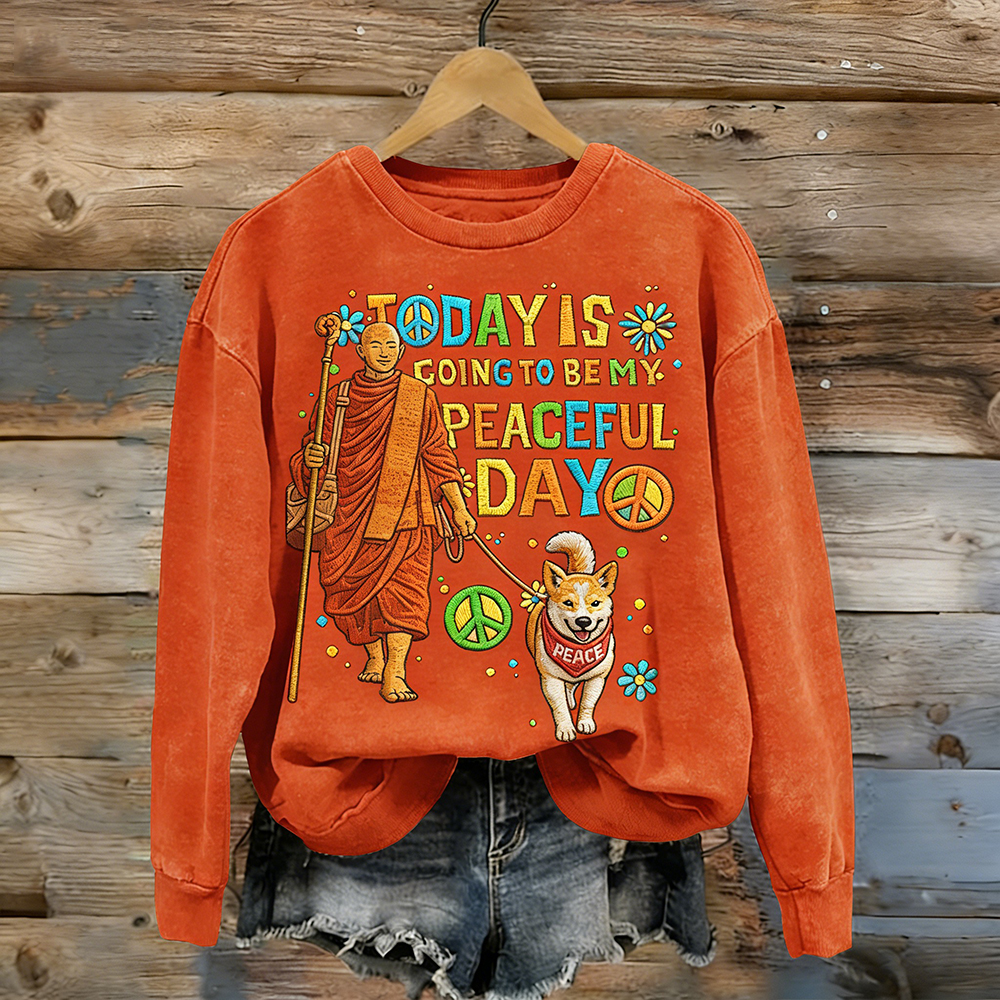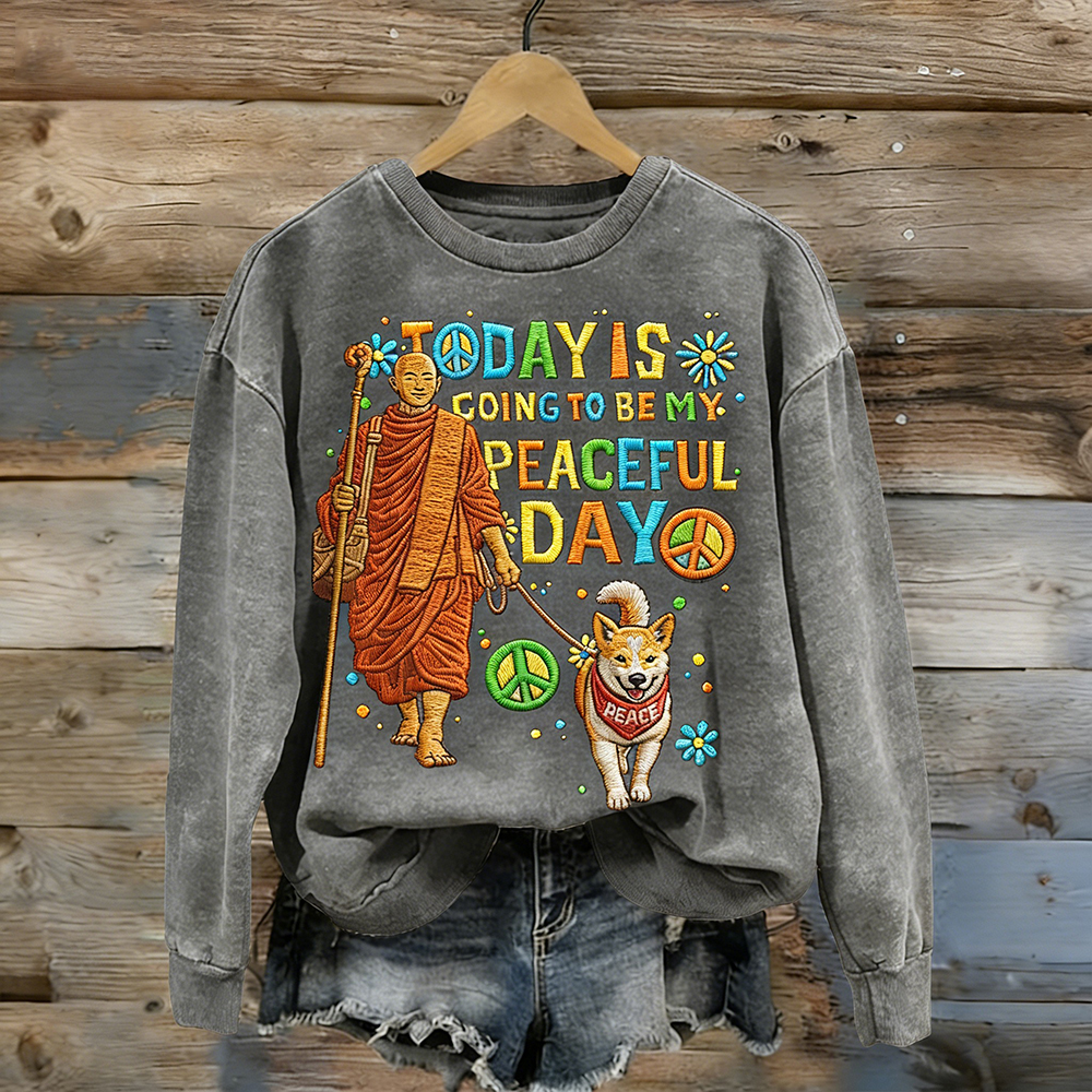 Today Is Going To Be My Peaceful Day Monk And Peace Dog Washed Sweatshirt