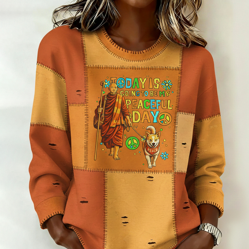 Today Is My Peaceful Day Print Casual Sweatshirt