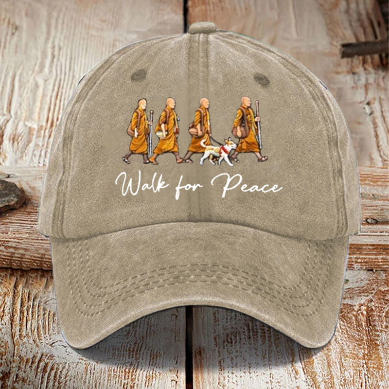 Unisex Vintage Walk For Peace Monks With Aloka Dog Print Baseball Cap