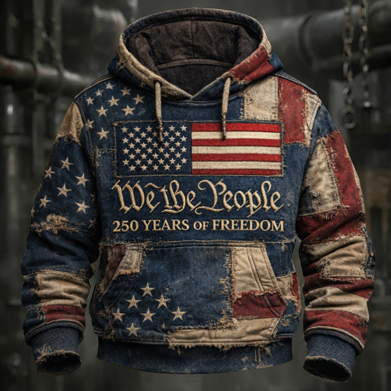 Us 250th Anniversary With America Flag In Patchwork Art Print Hoodie