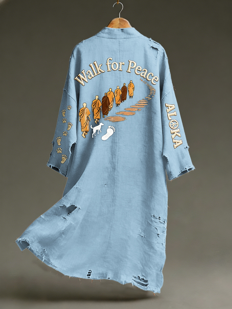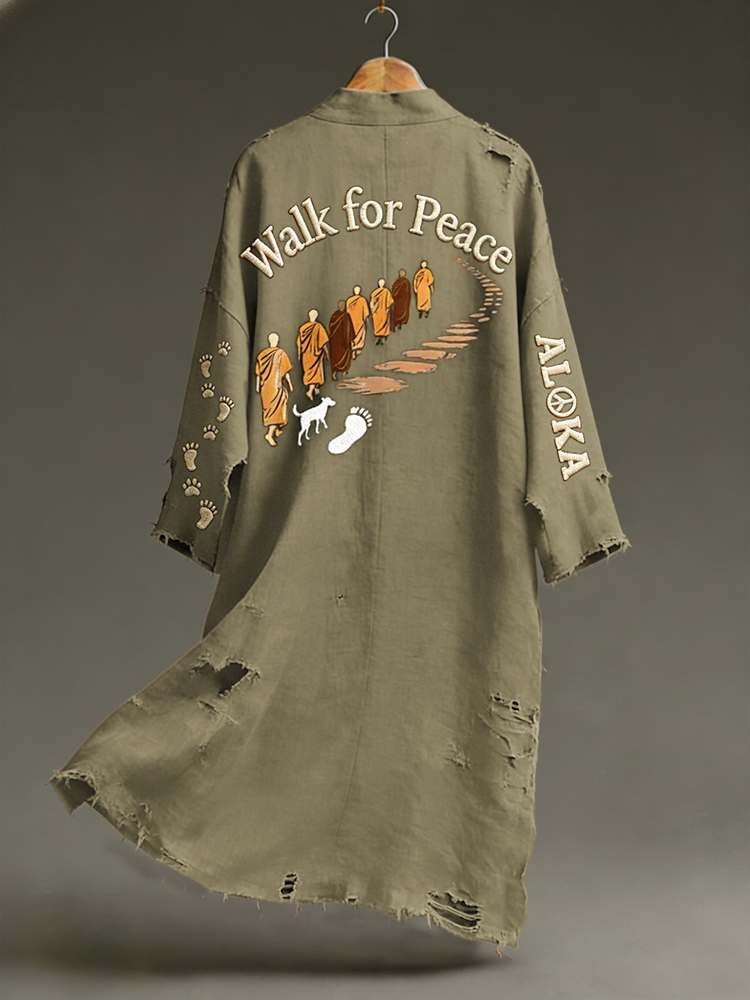 Vintage Peace For Walk Art Print Linen Long Kimono