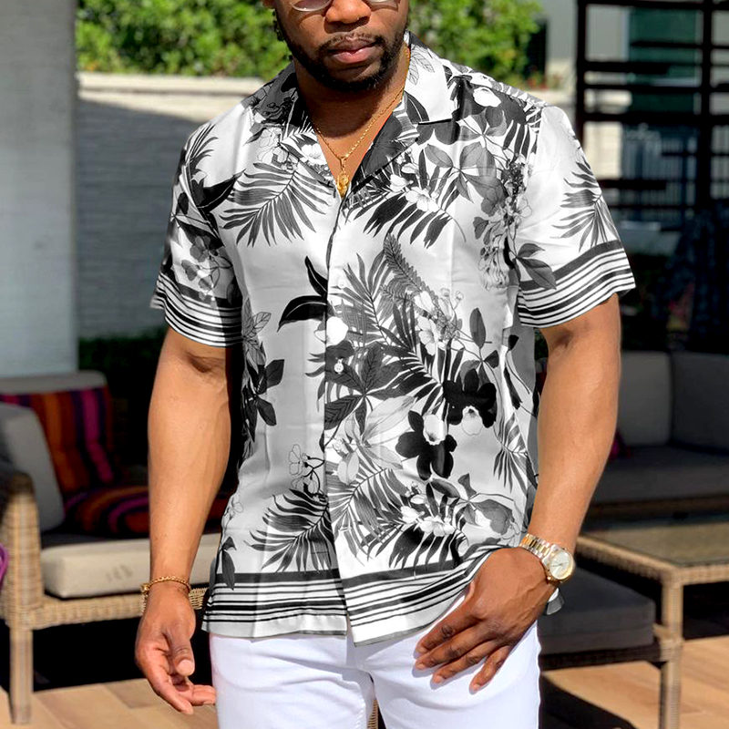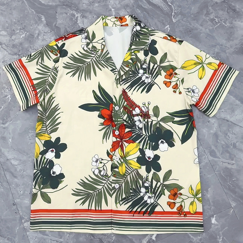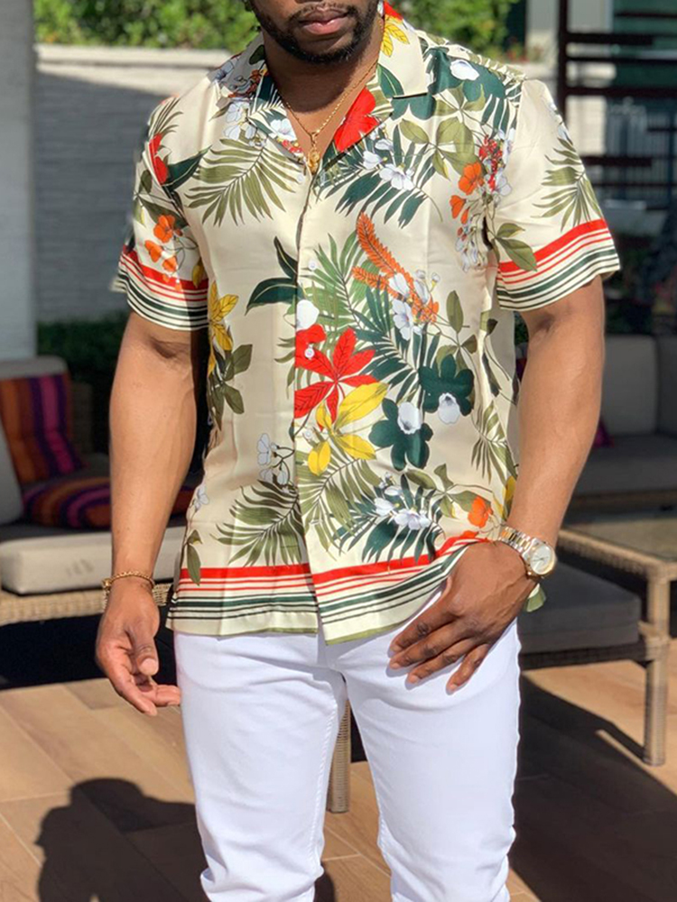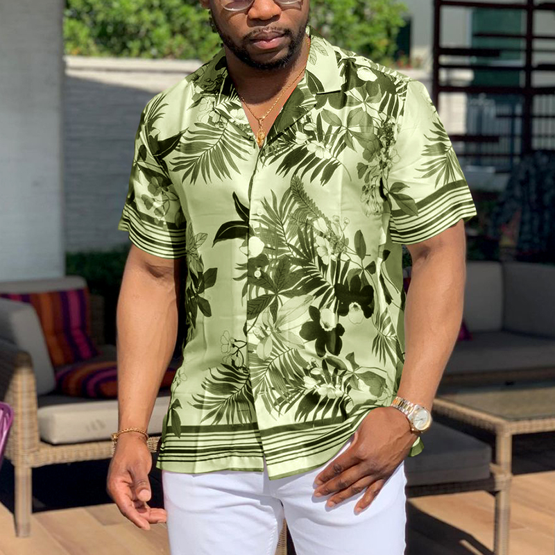 Vintage Vegetal Cuban Collar Short Sleeve Shirt