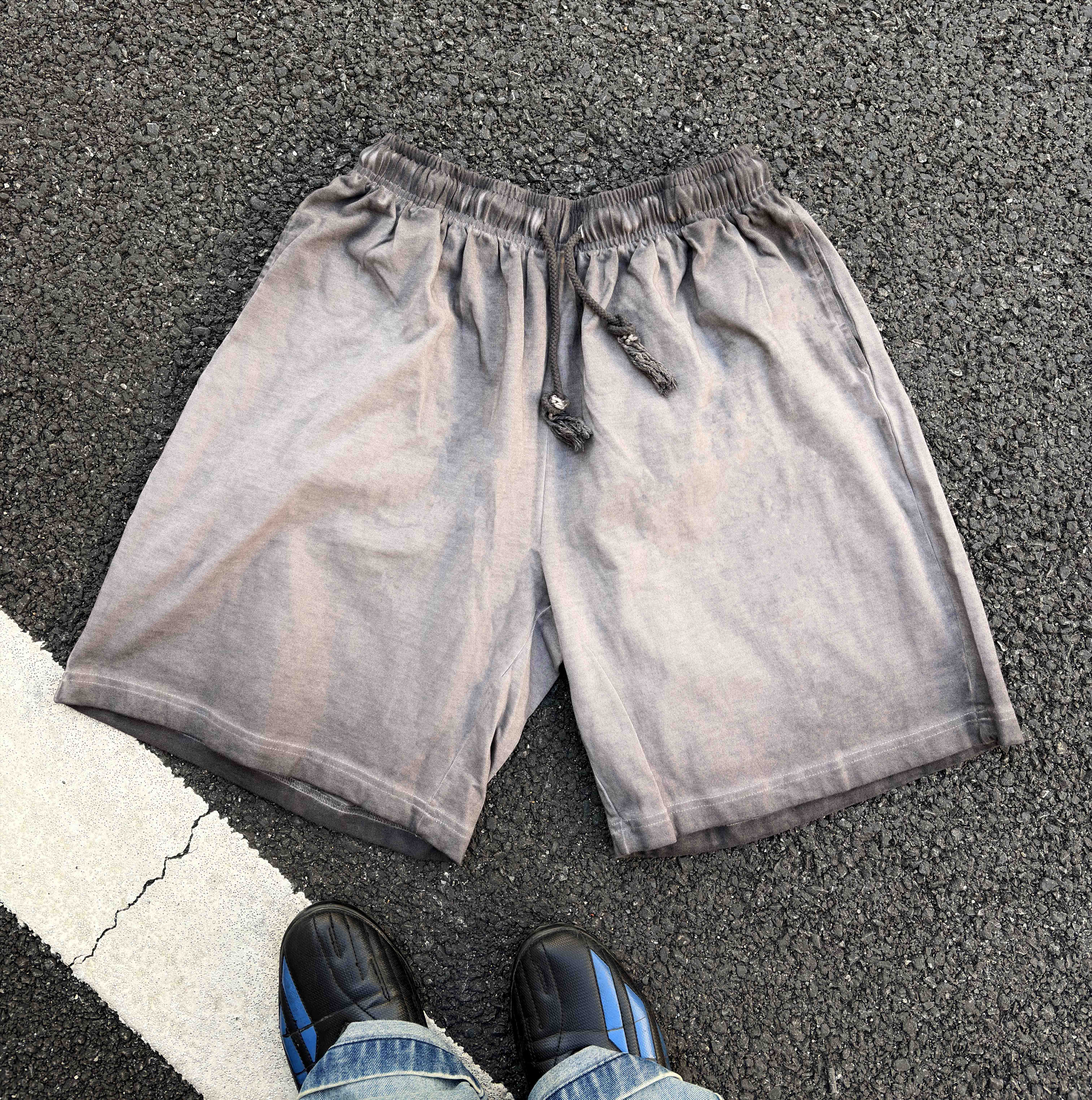Vintage Washed Distressed Pure Cotton Loose Drawstring Shorts